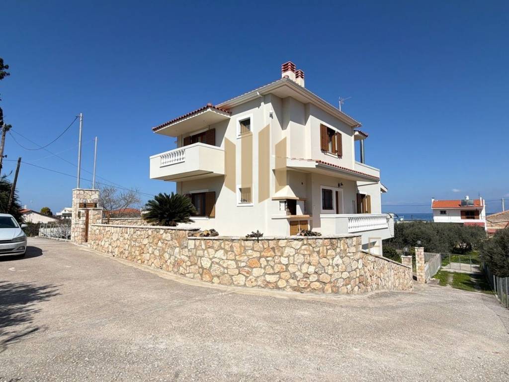 Detached House for Sale | Evrostini – Lykoporia Property Manager Manos Papailias/Estate Value An excellent three-level detached house (Semi-basement, Ground Floor, and 1st Floor) is available for sale in Lykoporia, Corinthia, just 80 meters from the sea, in a peaceful seaside location with beautiful views of the Corinthian Gulf. The property is an ideal option for a holiday home or an investment opportunity, offering spacious interiors and direct proximity to the beach. Key Features House size: 250 sq.m. Plot size: 400 sq.m. Levels: Semi-basement, Ground Floor, 1st Floor Year built: 2005 Parking: 1 covered space Condition: Excellent Layout 3 Bedrooms 3 Bathrooms 2 Kitchens 1 Living room Heating & Energy Autonomous oil heating Heating per level Air conditioning Boiler Energy-efficient fireplace Aluminum window frames with double glazing Energy Certificate: Class B Flooring: Tiles Location & Distances 80 m from the sea 3.3 km from suburban railway 164 km from the airport View & Orientation Sea view North orientation Additional Features Corner property Bright, airy, and sunlit Window screens Storage room Internal staircase Garden with lawn BBQ area Spacious verandas Night electricity tariff Three-phase electricity No communal expenses Pets allowed Quiet neighborhood Septic tank Ideal For Holiday residence Short-term rental investment Income-generating property In order to indicate & visit the property, the presentation of a police ID or passport is required. The characteristics and information of the property are provided by the owner who also bears the responsibility. The location on the map is approximate. ESTATE VALUE-GOUTZIOULIS Argolida/Korinthia/Arcadia/Achaea Nafplio:Polyzoidou 4 Tel.Center:2752096169 www.estatevalue.gr info@estatevalue.gr