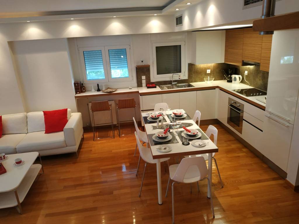 Luxury maisonette-penthouse, by the Marikes sandy beach, in the municipality of RAFINA-Greece, luxurious, modern, newly built, bright, furnished, with large balconies and unrestricted sea views, 140 sqm, open plan living room, 2 nd living room on the 4 th floor, 2 bedrooms with wardrobes, 3 modern bathrooms, Italian built- in kitchen, full electrical appliances, washing machine, dining table, fully furnished, solid oak floor, clima air conditioning / hot / cold and extra autonomous heating with radiator, secure door, security alarm, CCTV, mosquito nets and bbq on the top floor. 3 min walk from the sandy beach with a beautiful beach bar in the end of the beach.Communal garden, newly built. 20 min drive from very popular international schools Distance to convenience store 350 m, distance to local restaurant 600 m/7 mins walk, distance to Rafina centre 1. 8 km, 20 min drive from international airport El. Venizelos. Available also for short let, 3. 000 EURO per mounth or 8. 000 EURO per three mounths. . Short let 3. 000 . There is also the posibility to let it for week 1.500€