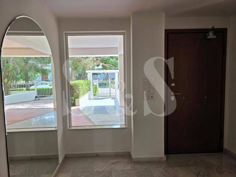 Glyfada, Ano Glyfada - Apartment 114sqm plot 500sqm, electrical appliances furnished, bedrooms 3, levels 1, 1st, excellent condition, year built 2000, energy class C, living room, hall, kitchen, 2 bathrooms, heating type: autonomous, heating medium oil, parking covered, quiet, luminous, corner, view unobstructed view, frontage, painted, storage space 9sqm, solar heater, fireplace, balconies, elevator, garden, frames aluminum, double glazed windows, door screen, floor type ceramic tiles, separate kitchen, alarm, video doorbell, luxurious, within city plan, residential zone, eastern orientation, access from asphalt.