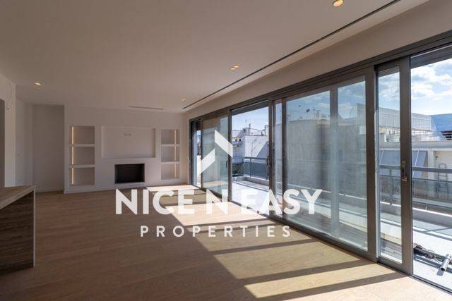 In Lycabettus, on one of the most beautiful and quiet streets of the area, on Dimoharou Street, near Moni Petraki, a renovated 130 sqm apartment is available for rent. Located on the 4th and top floor, it features spacious terraces, a living room filled with natural light, a fireplace, an open kitchen, two bedrooms each with its own bathroom, a third smaller bedroom, and an extra WC with a shower for guests, along with space for a washer-dryer. The bedrooms have access to a terrace overlooking the Lycabettus forest, while the large sliding doors in the living room provide maximum natural light, a modern aesthetic, and visual continuity, creating the sensation that the indoor and outdoor spaces are united—an ideal setting for social gatherings or moments of relaxation. Rent price: €2,800. For a visit, please contact +306945316575 at Nice n Easy Properties.