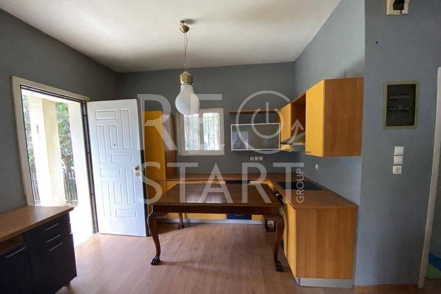 Melissia, Orio Kifisias - Detached House 118sqm plot 377sqm, bedrooms 3, levels 1, ground floor, good condition, year built 1974, renovation year 2008, energy class E, 2 living rooms, 2 kitchens, 2 bathrooms, heating type: autonomous (natural gas), air condition, parking open space, quiet, dual aspect apartment, luminous, unobstructed view, frontage, balconies, large balconies, garden, aluminum frames, double glazed windows, door screen, wood & tile floors, without common charges, secure door, pets allowed, within city plan, residential zone, east-southern orientation, access from asphalt, close to square (up to 500m), close to market (up to 200m), close to school (up to 200m), close to bus stop (up to 200m).