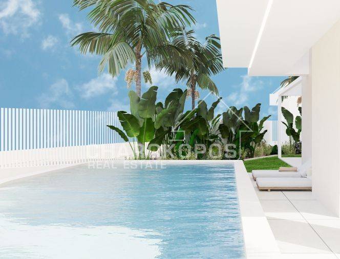 3rd floor apartment for sale, 90 sq m. It consists of reception areas, kitchen, two bedrooms (1 master), two bathrooms and balconies. The house is equipped with a heat pump, underfloor heating and an air conditioning unit (with ducts). It has energy-efficient aluminum frames with double glazing, screens, bioclimatic fireplace, water heater, solar water heater, pre-installation of an alarm as well as a video door entry system. It has verandas with a view. It also includes a storage room and a closed parking space. Delivery February 2027.