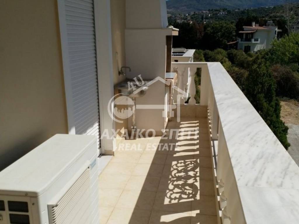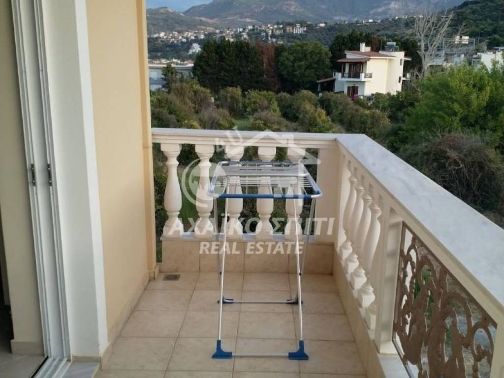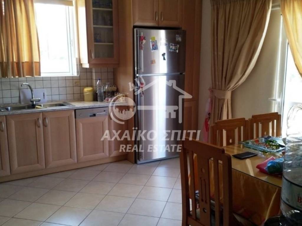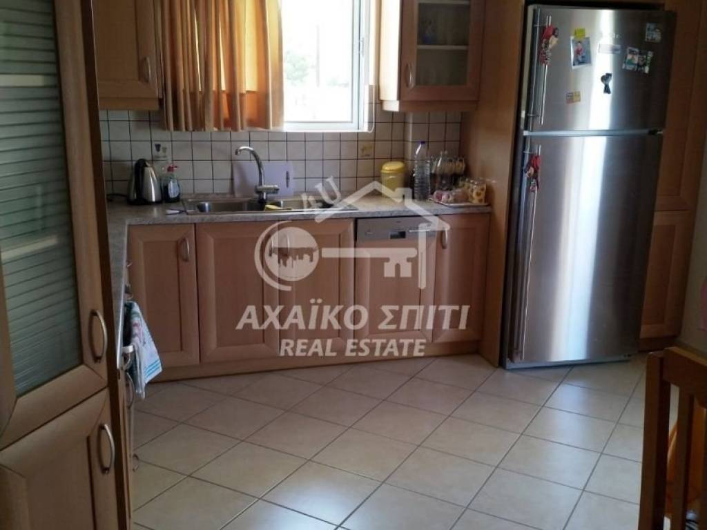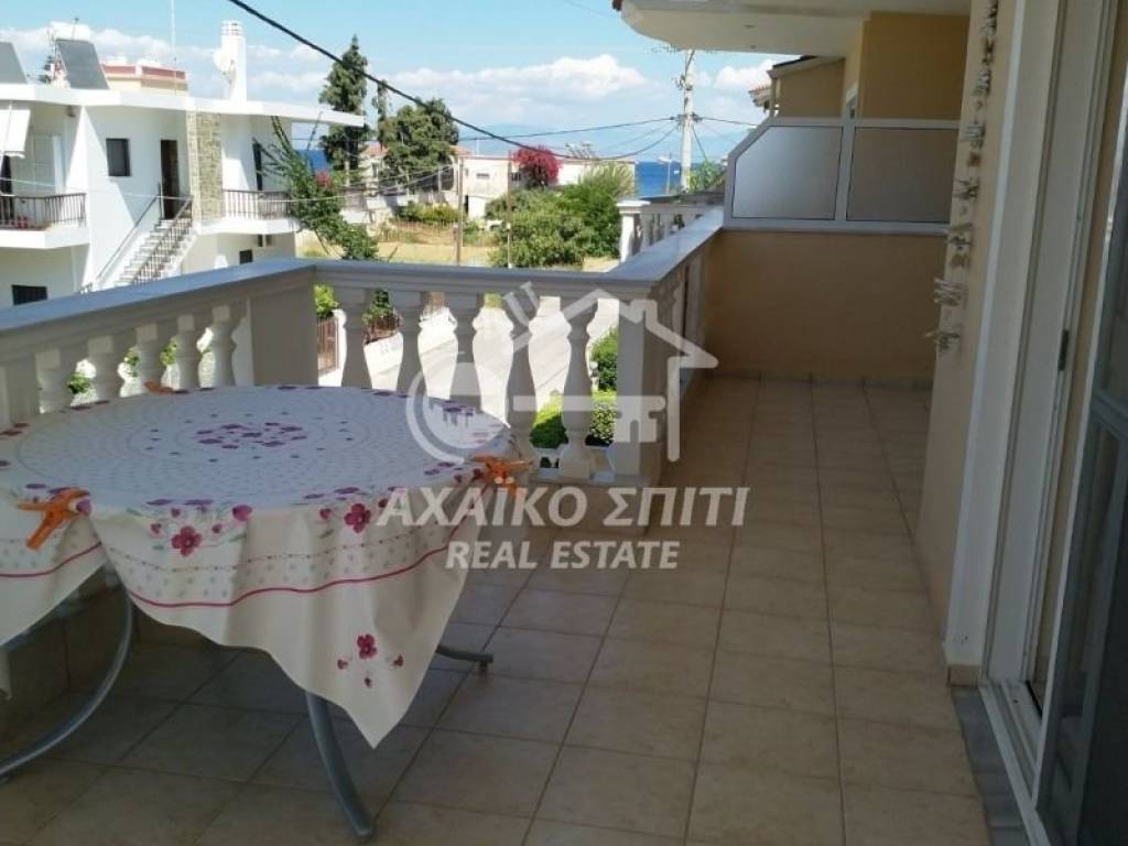 Akrata -Krathio. For sale is a privileged corner sunny apartment of 99 sq.m. on the elevated 1st floor, built in 2003, in a two-story building with a few apartments (3 two-room apartments on the ground floor and 2 large apartments on the first floor). Fully furnished and with all electrical appliances. It consists of 3 bedrooms, a living room with an energy fireplace and a kitchen, a bathroom, a w/c, large verandas and balconies 150m. from the beautiful beach of Akrata. It has autonomous heating with oil, solar panels, aluminum frames, double glazing, an elevator (there is a machine but it is not working at the moment), a security door, It also has a legalized semi-basement of 57 sq.m. with a closed parking space and the rest with the possibility of being converted into a residence, storage space or playroom. It also becomes an ideal investment proposal for
