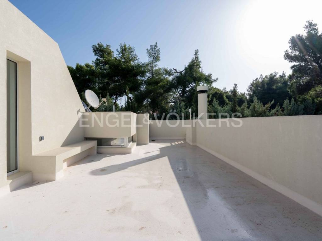 A fully renovated 350sqm maisonette, in the center of Ekali is available for rent. The house is developed on four levels and has a beautiful garden that gives privacy from the street. This quiet and safe neighborhood, is an excellent choice for a family. The spacious, open plan living room with fireplace and dining area, overlooking the garden has ideal orientation. In a separate space, the large kitchen has access to the back garden. In addition, on the lower level there is a guest bathroom and a laundry room with storage spaces. On the upper levels, there are five bedrooms with balconies, one of them with en suite bathroom and another two bathrooms that are shared by the four rooms. On the lower level, there is an independent one-bedroom apartment with bathroom and a small kitchen with direct access to the back garden, two storage spaces and the underground garage for three cars. The house is fully equipped, has a new alarm system, elevator, CCTV, brand-new double-glazed window frames, a thermal faceplate system installation and a new heat pump. This house is an excellent choice for a family who seeks comfort and luxury in the heart of Northern Suburbs. Ekali is an affluent suburb situated at the foot of the pine-clad Penteli mountain, just 4km from Kifisia and 16km from the Athens city centre. It boasts high standard architecture, excellent street design and lush green spaces, as well as private sports and social gathering clubs. Unique features: Ekali, named after the ancient Greek deme of Hecale, is a peaceful, well-heeled suburb of Athens. It is a lush suburb, surrounded by forests, ideal for those seeking harmony with nature. Large, spacious villas abound and it is home to expats and some of the country's most powerful business and shipping families. Most Ekali residents avail of the sports facilities at exclusive members-only clubs such as the Ecali Club and the Politia Tennis Club. International schools are easily accessible by school-run bus services. Ekali is a purely residential area, which means that retail, commercial shops nd professional businesses are not permitted within the community. Accessibility: Ekali is very close to Drosia, Nea Erythrea and Kifissia, with all three cities being a few minutes drive away from Ekali, and offering amenities convenience stores abound, as well as a galore of virant cafes, trendy restaurants and a lively nightlife. The city has quick access to the National Highway making it easy not only for quick weekend getaways, but also access downtown and the Athens Riviera within 20-30’. The international airport is a 45-minute drive via the Attiki Odos. Investment potential: It is one of the most prestigious addresses in the Athens area that will always attract interest. Ekali speaks for itself, a dream-area, often referred to as a ‘green oasis’ offering excellent living standards, and increased sense of security. As the district is purely residential.