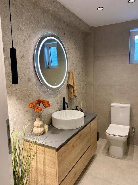 It is an independent, brand-new apartment, which was constructed in 2024 on the second floor of a single-family house. It has 118 square meters with an open-plan kitchen, living room, and dining area, an amazing bathroom and a WC, both with Spanish tiles, LED mirror lights, and black shower heads and accessories. The apartment includes two bedrooms with incredible 360-degree views of the enchanting Porto Rafti, with access to the terrace. It includes LED down lights, double glazed aluminium windows, security door, security cameras, intercom, spacious tiled garden area, independent external door, air conditioning, modern Spanish tiles throughout, secured covered car space with automatic door. Walking distance to the beaches of Agios Spyridonas & Eroto spilia. Very close to bars, tavernas & restaurants, local schools, supermarket and main shopping strip. *The apartment requires kitchen and a single wall to be installed