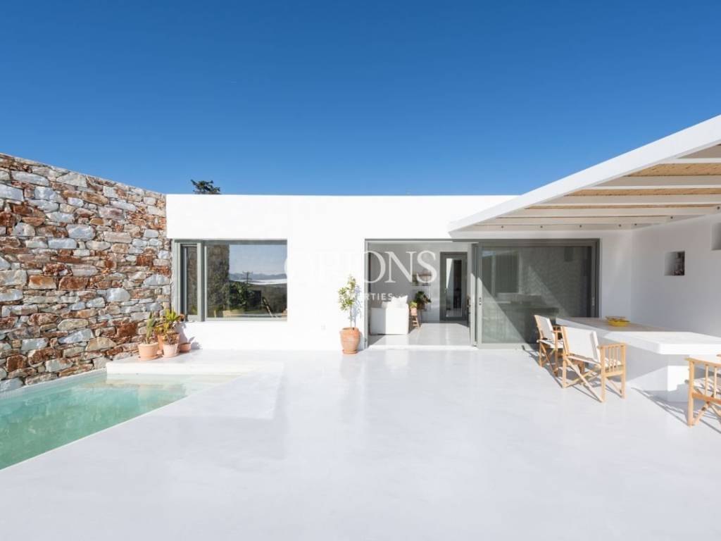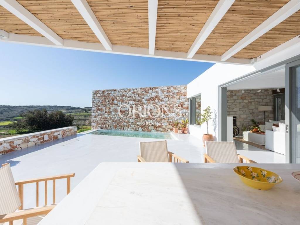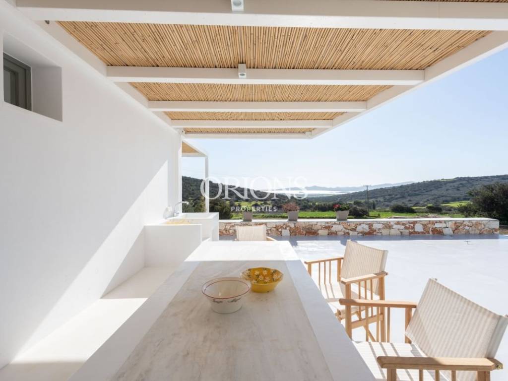 Paros is one of the most beautiful islands in the Cyclades, known for its authentic architecture and distinctive atmosphere. Just 5 minutes from Alyki, in a शांत and private location in Kamari, this exceptional villa is situated.