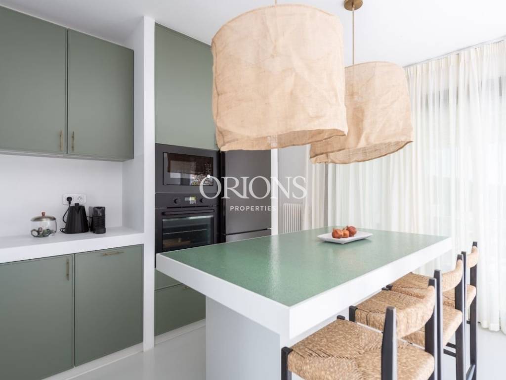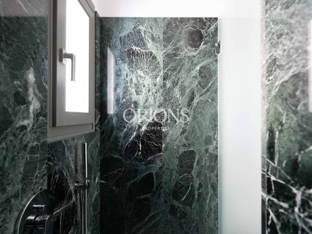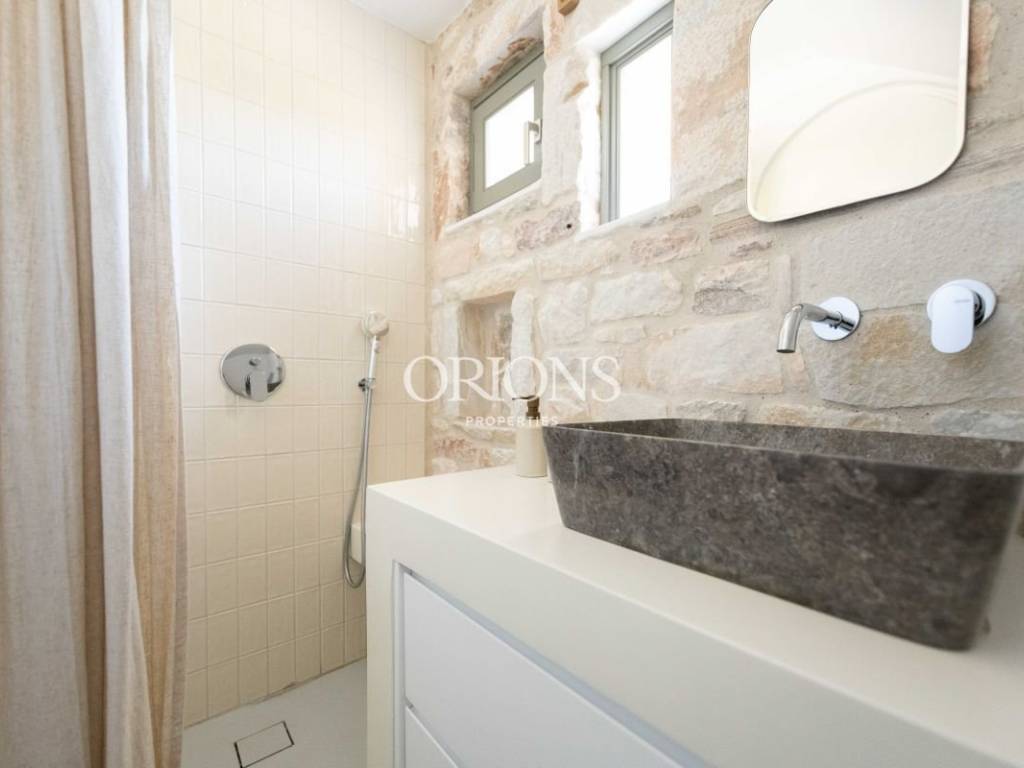 The bedrooms emphasize comfort and privacy, each featuring its own en-suite bathroom. In some areas, unique materials have been used, such as green Tinos marble, adding an elegant touch to the overall design.