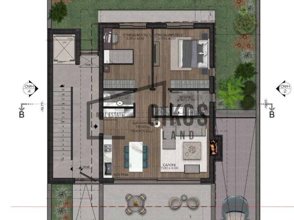 FOR SALE Ground-floor apartment of high architectural and minimal design, with a total area of 78 sq.m., on a 265 sq.m. plot, under construction.