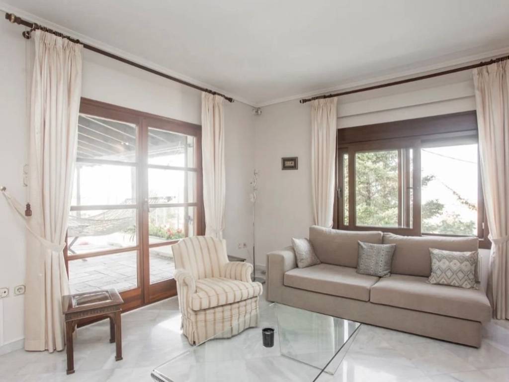 Luxury Residence for Sale – 380 sq.m. in Panorama, Thessaloniki In one of the most privileged locations of Panorama, in the Nomos 751 neighborhood, a unique three-storey detached house of 380 sq.m. is offered for sale, built on a private plot of 780 sq.m. This is a property of high aesthetics and luxurious construction, ideal for families seeking comfort, privacy, and an exceptional quality of life in one of the most sought-after areas of Thessaloniki. Property Layout Ground Floor – 129 sq.m. • 2 spacious bedrooms • Large open-plan living room and kitchen with fireplace • Storage room • Laundry room • 1 large office 1st Floor • Large, bright living room with fireplace • Separate, fully functional kitchen • Guest WC • 1 bedroom • Large veranda with view 2nd Floor • 3 bedrooms • 2 bathrooms • The larger bedrooms feature their own private balconies The house offers excellent ergonomics and was constructed with high-quality materials, providing comfort, brightness, and functionality in every space. The outdoor areas are beautifully designed for relaxation, and there is the possibility to install a swimming pool. All areas are equipped with air conditioning, while the central heating operates with a natural gas boiler. The property also includes one parking space within the plot. For more information and photos of the property, please do not hesitate to contact us. For property viewings, the presentation of an ID card or Tax Identification Number (AFM) is required, and these details must be recorded in the viewing order form, in accordance with Law 4072/11-4-2012 (Government Gazette 86 A). For any of your real estate needs, feel free to contact us.