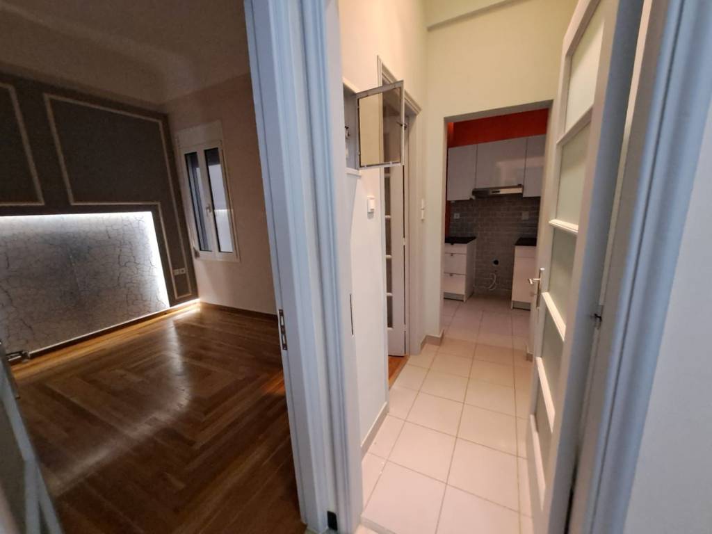 Recently gut renovated, bright apartment 2x BR, 1x LR & foyer, features a brand new bathroom (with space for laundry machine), an elegant kitchen/dining area with granite floors, original Swedish parquet floors, freshly painted walls & closets, high ceilings (3.5 m), large aluminum windows & electric shutters, Rent includes the building's common charges, a pleasant space that you can call "my home". Located on the 1st floor of a quiet & safe building, with a recently renovated stylish staircase, main entrance with spot & hidden lighting in a balanced decorative style, the building is located 2 blocks from Patision Street , close to a stop for many bus lines & 10' walk from Agios Nikolaos ISAP station and close to Fokionos Negri, Kypselis Sq, Amerikis Sq. & Koliatsou Sq. With short access to many supermarkets & local shops (restaurants, bakeries, dry cleaners, kiosks etc.) it makes it an ideal residence to live in, main features of the building are its security, cleanliness, its appearance & the few tenants (family-friendly environment), Porou St. is a tree-lined street, quiet with easy access for parking on the street at all hours of the day