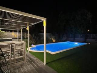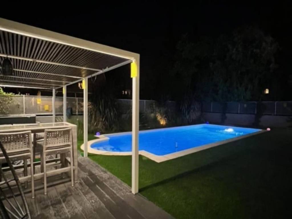 Luxurious ground floor apartment 180 m2 in Athenian Riviera – Voula, with private swimming pool 39 m2 in private garden pool 537 m2, with separate entrance and underground parking – like a house! • Top quality construction by developer who is also the owner and uses it as own residence • Built in 2008 – apartment, garden and swimming pool were fully renovated during 2022 - 2023 • Total apartment surface: 180 m2, including semi – closed areas (approx. 150 m2 with out the semi closed areas) • 3 bedrooms, 2 bathrooms, 1 guest WC • Open kitchen • Spacious living & dinning area • Panic room set up (rolling shutters & closing door) • Balconies in front & rear • Separate storage areas (2) • 2 + parking spaces, underground • Home cinema • Brand new kitchen equipment (Gaggenau refridgerator) and bathrooms equipment (Moda Bagno) • Teuco hydromassage with different exercise programs • Underfloor heating (oil), central Air Conditioning - Daikin • Secure apartment entrance door • Intercom system for separate entracne to the premises • Smart home • home movie theater, projector, stewart screen 130 cm • exclusive use of exterior areas (private swimming pool 39 m2 and private garden 537 m2) • separate entrance to the apartment • swimming pool dimensions: 4 m Χ 9 m + 1 U shaped end form the total swimming pool size at 39 m2 (so that it is just below the threshold of 40 m2, which is taxed • quiet building with just 4 apartments in 5 levels, in quiet neighborhood.