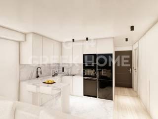 Pangrati, Varnava - Apartment 69sqm unfurnished, bedrooms 2, 3rd, under construction, year built 2024, energy class A, living room, kitchen, bathroom, heating type: autonomous (thermal store), air condition, parking covered, quiet, luminous, frontage, painted, storage space 5sqm, external thermal insulation, balconies, balcony 7sqm, tents, elevator, aluminum frames, double glazed windows, door screen, wood & tile floors, secure door, luxurious, satellite, internet, pets allowed.