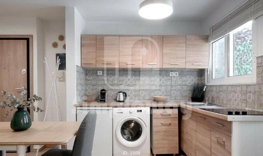 Pangrati, Agios Artemios - Apartment 39sqm bedroom, levels 1, semi-basement, renovated, year built 1970, renovation year 2023, energy class D, living room, kitchen, bathroom, heating type: autonomous (air condition), quiet, garden, aluminum frames, door screen, ceramic tiles floors, secure door, residential zone.