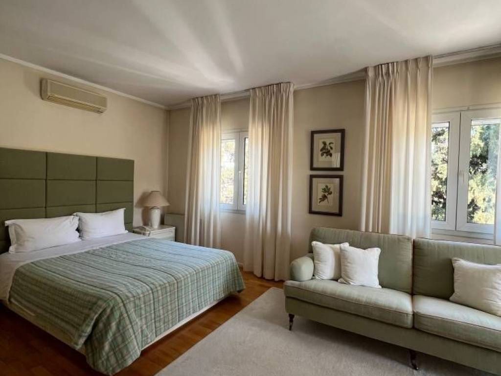 Additional features include: autonomous natural gas heating / fireplace / air conditioning, aluminum window frames with double glazing, security door, oak and marble (Dionysos) flooring, awnings, insect screens, parking space, wraparound balconies, a garden, and a garden shed.
