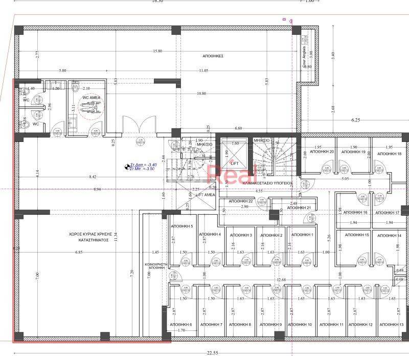 Πρόσοψη 18μ, με άριστη ορατότητα. Σύνδεση όλων των επιπέδων μέσω ανελκυστήρα και εσωτερικών κλιμάκων.