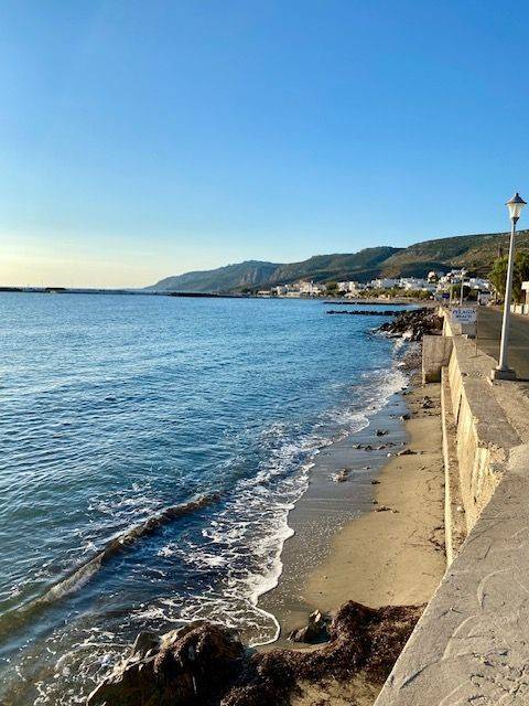 Agia Pelagia: A 1 bedroom apartment on the second floor is for sale in the beautiful bay of Agia Pelagia. The apartment consists of 1 bedroom, 1 bathroom, open plan kitchen and lounge room. It includes a large balcony with beautiful views over the bay of Agia Pelagia at the front aswell as a verandah at the rear. It has white aluminium windows and blue window shutters and entrance door. There is also an open area for parking. There is a small garden at the rear and on the side with lemon trees and local flowers. Only 150 metres from the beach, shops, cafes and tavernas of Agia Pelagia. The building is freshly painted with traditional Kytherian colours of white, yellow and blue. Four beautiful beaches follow after Agia Pelagia's beach. Imagine sitting on the balcony and taking in the serenity of the waves and sunset.