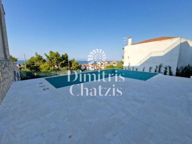 A newly built ground floor apartment is available for sale in Polychrono Halkidiki, located in a modern residential complex in the heart of Kassandra. This property is an excellent choice for a holiday home or a profitable investment opportunity in one of the most popular summer destinations. The apartment has a total area of 53 sq.m. and consists of a living room, kitchen, one bedroom, and one bathroom, along with a private yard offering comfort and relaxation. The property is bright, dual-aspect, fully painted, and features a modern design with a functional layout. Built in 2023, it ensures high construction quality using eco-friendly materials. It includes aluminum window frames, tiled floors, and air conditioning for year-round comfort. The apartment also comes with a private parking space, adding convenience and security. The complex offers a shared swimming pool and BBQ area, ideal for leisure and social gatherings. It is located close to the sea and near schools, a square, a church, supermarkets, and the town center, ensuring easy access to all amenities. Additional features such as a security door, insect screens, pet allowance, and a quiet neighborhood enhance its appeal. With views of green surroundings and a sense of openness, it is ideal for both personal use and rental income. The price of the property is 135,000 euros, making it a highly attractive opportunity combining quality, location, and investment potential.