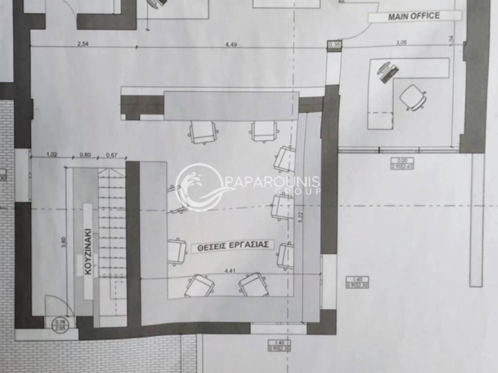 Ο πρώτος όροφος διαμορφώνεται σε έναν ευρύχωρο open-plan χώρο εργασίας δυναμικότητας περίπου 15 θέσεων, πλαισιωμένο από διακεκριμένο διευθυντικό γραφείο και χώρο συνεργατών συνολικής επιφάνειας περίπου 30 τ.μ. Το επίπεδο ολοκληρώνεται με kitchenette, WC και άμεση πρόσβαση σε ιδιωτική βεράντα 50 τ.μ. με θέα σε πεζόδρομο, προσφέροντας ένα ιδιαίτερα ευχάριστο και λειτουργικό περιβάλλον για καθημερινή εργασία αλλά και εταιρικές συναντήσεις.