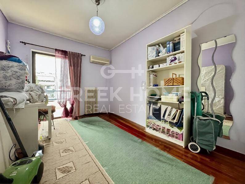 Vyronas, Kareas - Apartment 116sqm plot 1002sqm, unfurnished, bedrooms 3, 3rd, very good condition, year built 1987, energy class D, living room, hall, kitchen, bathroom, 2 wc, heating type: autonomous (natural gas), air condition, parking, quiet, dual aspect apartment, luminous, frontage, storage space 5sqm, solar heater, balconies, large balconies, tents, elevator, loft storage, aluminum frames, wood floors, separate kitchen, secure door, video doorbell, price is negotiable.