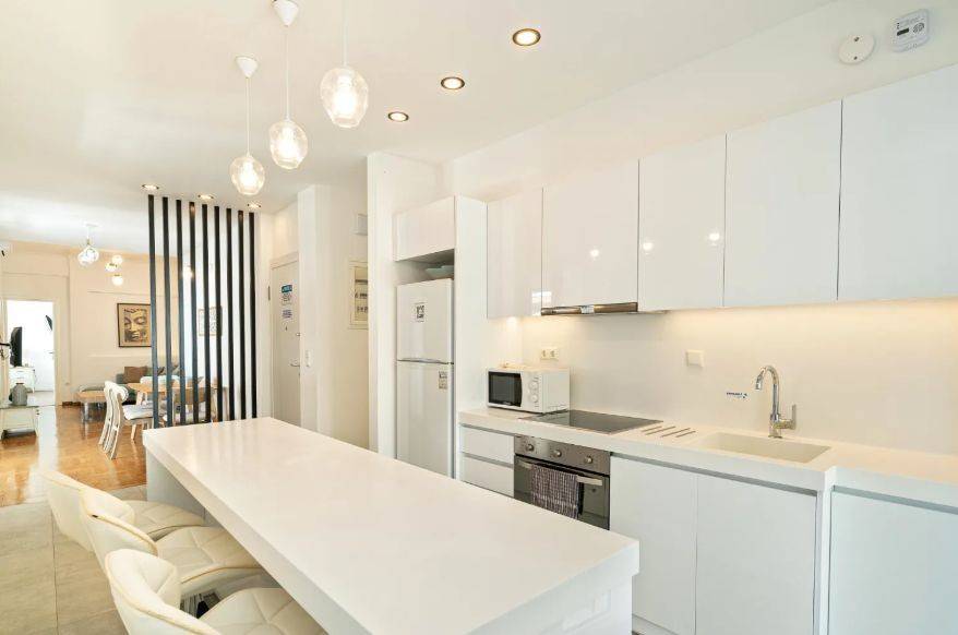 Renovated 80 sq.m. apartment for rent on the 3rd floor, located in Exarchia – Neapoli. The property, renovated in 2024, consists of two bedrooms, one bathroom, a kitchen, and a living room, offering a comfortable and functional layout. It features electric autonomous heating, air conditioning, a solar water heater, aluminum frames with double energy-efficient glazing, electrical appliances, awnings, an elevator, a security door, and wood and laminate flooring, ensuring comfort and modern living. The apartment is painted, fully furnished, front-facing, bright, airy, and modern, with an east-south-east orientation and open view. It is situated in a quiet neighborhood, close to public transport, parks, squares, shopping areas, and dining options. The location shown is indicative. For more information or to schedule a visit: KOSMOS REAL ESTATE Property Manager: Alexis Kosmopoulos – 6986109593 info@kosmosrealestate.gr www.kosmosrealestate.gr