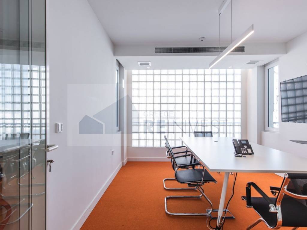 PREMIER EXECUTIVE OFFICE Στον 8ο και τελευταίο όροφο ενός εμβληματικού κτηρίου βρίσκεται ένα γραφείο που «γράφει» από μόνο του, σε ένα από τα πιο εμβληματικά σημεία του αθηναϊκού business district, με πρόσοψη στην Πανεπιστημίου και άμεση πρόσβαση σε δύο σταθμούς μετρό (Ομόνοια & Πανεπιστήμιο, απόσταση λίγων λεπτών με τα πόδια) Ανακαίνιση αιχμής 2023 φτιαγμένη για δυναμικά powerhouse teams 22 ατόμων: 20 premium workstations με άψογες Legrand Mosaic ενδοδαπέδιες πρίζες, δύο θέσεις υποδοχής- reception, 15,5 τ.μ. executive meeting room (διπλά HDMI 2.1 8K-ready), ιδιωτικό booth, μία ευρύχωρη κουζίνα πλήρως εξοπλισμένη, ένα μπάνιο και δύο WC – όλα πλημμυρισμένα με άπλετο φυσικό φως από την πρόσοψη, ακάλυπτους & ταράτσα γειτονικού κτηρίου. Η κορυφαία 30 τ.μ. πανοραμική βεράντα με ορίζοντα από Υμηττό έως Αιγάλεω – μετατρέπεται σε C-suite boardroom, VIP lunches ή creative inspiration hub. Fully loaded smart office: Κλιματισμός: Αυτόνομο VRV LG ARUN100LSS0 + 7 κασέτες ARNU07GTRB4, PREMTB100 RS3 οθόνες (7+1), VAM LZ-H050GBA5 500m3/h, θερμοστάτες, θυρίδες. KNX ABB: 7" touch panel, Theben RONDA S360 x16 (workspaces/WC/kitchen dimming), ρολά (NYM 4x1.5), BUS για AC/thermostats/φώτα, preps meteo/temp/υγρασία/AC modules, touch buttons. Συναγερμός: Paradox EVO 192 (TM70 πληκτρολόγιο, 3 επεκτάσεις), 2 μπαλκόνι κάμερες CAT6 UTP (128GB SD), NOVA επαφές, DG467 360° κίνηση, int/ext σειρήνες. Θύρα: Sambo 7" WiFi θυροτηλεόραση (EasyIP app), DT594 κάμερα, access control, ηλ. κυπρί. Πυρανίχνευση: Paradox Fighter 8 ζώνες (2x7Ah), 9 καπνού (πυράντοχα), θερμ. ανιχνευτής, μπουτόν, φάρος, IP module, πυροσβεστήρας, Olympia φώτα x6. IT/Δίκτυο: Οπτική ίνα, Keystone rack 19" 24U (600x600x1200), 56 CAT6A γραμμές, 4 VECTOR SAT 110 TV (Fracarro κεραία), 2 HDMI 2.1 8K meeting. Ρεύμα: 3φ 35kVA ΔΕΔΔΗΕ (A05VV-U 5x25mm2, σπιράλ 3" γαλβ.), UPS panel. Κουφώματα: PVC διπλά τζάμια ασφαλείας/4 εποχών. Είσοδος: Άμεση στοά-ανελκυστήρες (07:00–23:00, τηλεχειρισμός ρολού) – ελεγχόμενη prestige πρόσβαση. Ιδανικό για Δικηγορικά/συμβουλευτικά/tech scale-ups – data-center ready έδρα αριστείας. REINVEST GREECE | 210 7728460 | sales@reinvest.gr | www.reinvest.gr