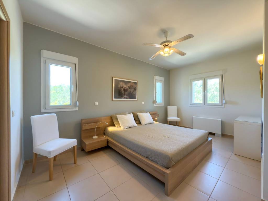 Spacious 4 Bedroom Villa with Sea and Countryside Views in Kato Korakiana This beautifully maintained villa, built in 2012, offers generous living space, privacy, and uninterrupted views across the sea, Gouvia, Corfu Town, and towards the mainland. Designed for full-time living, the property features high-quality insulation and a modern heat pump system, ensuring energy-efficient comfort all year around. Set on a south-facing 5,400m² plot that enjoys sun from morning to evening, the home has a total built area of 231m², including a 26m² garage. The upper level includes a spacious open-plan living and dining area, which opens onto a 27m² covered balcony—ideal for relaxing and enjoying the sweeping views. The kitchen is well-equipped, and the space is fitted with ceiling fans, a wood burner, and a fan coil heat pump that provides both heating and cooling throughout the entire house, including all bedrooms. The upper floor also houses the master bedroom, complete with a walk-in wardrobe and a generous en-suite bathroom, along with a guest toilet. On the lower level—directly accessing the pool area—there are three additional double bedrooms, a family bathroom, a utility room, and internal access to the garage. The grounds surrounding the villa are landscaped with Mediterranean planting, including a variety of fruit and olive trees, as well as herbs like rosemary, sage, and thyme. Although not all trees are harvested every year, the property has produced around 25 litres of olive oil and several kilos of edible olives. Additional trees include almond, apricot, pomegranate, fig, plum, and kumquat. The private swimming pool measures 3.5m x 6.5m and is complemented by an outdoor toilet—ideal for summer entertaining. The location offers a serene and secluded setting, yet is conveniently just 5 minutes from nearby villages, 12 minutes from the east coast beaches, and approximately 30 minutes from Corfu International Airport. Key Features: 4 bedrooms, 2 bathrooms plus guest and pool toilets Total built area of 231m² (including 26m² garage) 5,400m² south-facing plot with landscaped grounds Constructed in 2012 with Quad-Lock insulation for year-round energy efficiency Open-plan living/dining area with wood burner, ceiling fans, and heat pump system Heat pump provides heating and cooling throughout all living areas and bedrooms Master suite with walk-in wardrobe and en-suite bathroom 3.5m x 6.5m private pool with outdoor toilet Quiet and private location 5-minute drive to local villages 12 minutes to beaches 30 minutes to Corfu Airport Who are we? Chase Real Estate Corfu is based on the Island of Corfu with a team of professionals dedicated to making buying a property as hassle free as possible. Our team will be with you every step of the way. Our buying service includes: Property sourcing Property viewings Property investment planning Assistance with negotiations and contracts Set up with lawyers Assistance with tax number & bank account set up Golden visa assistance Interested in Buying a Property in Corfu? Learn more about our services at chaserealestatecorfu.com/buy Selling a Property in Corfu? Discover more about our selling process at chaserealestatecorfu.com/sell Our Legal Services: Rest assured, our clients receive dedicated assistance from our experienced legal team at discounted prices. Learn more about our legal services at chaserealestatecorfu.com/legal Contact Us: Phone: GR 0030 690 627 4665 Email: info@chaserealestatecorfu.com Website: chaserealestatecorfu.com