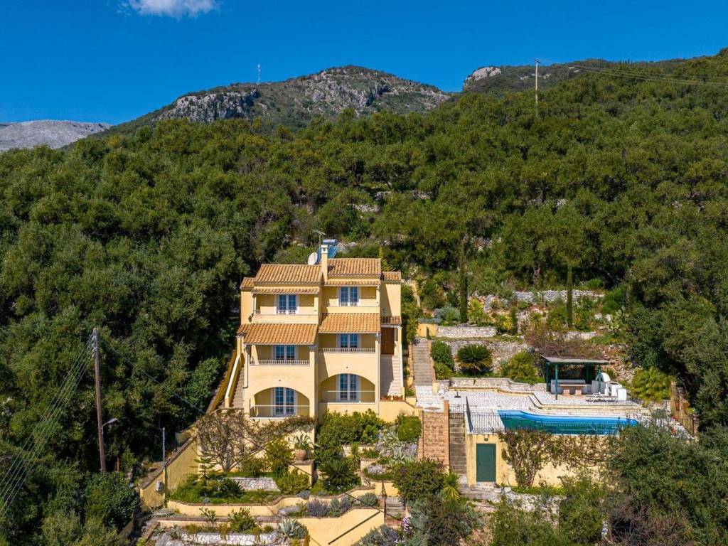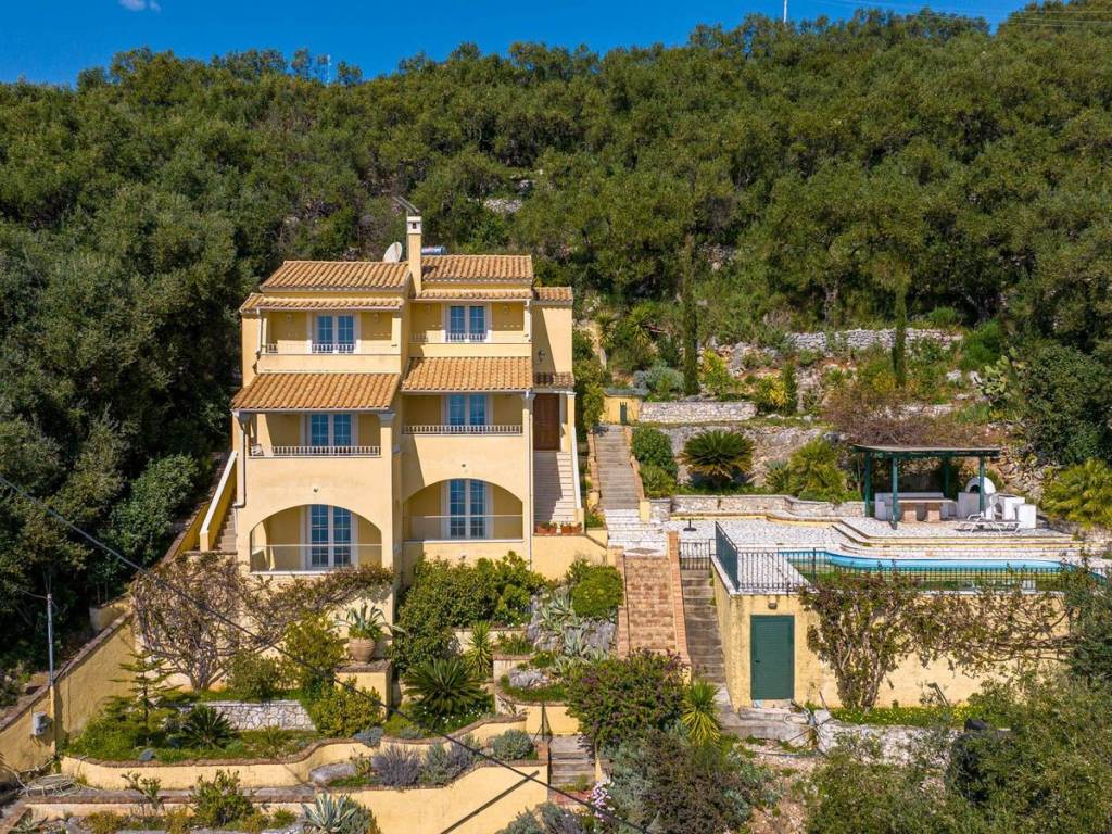 In the idyllic northeastern part of Corfu, a unique 196 sqm villa, built in 2008 and recently renovated in 2014, offers unobstructed, panoramic views of the Ionian Sea. The villa spans three levels, each with spacious terraces and white wooden pergolas, blending bright, open interiors with Mediterranean architectural elegance. The ground floor features two bedrooms with en-suite bathrooms and direct access to the lush garden, while the main floor hosts a bright living room with large windows, a separate dining area, a fully equipped kitchen, and a stylish guest WC. The upper floor comprises two bedrooms with private bathrooms, ensuring comfort and privacy for all residents. The 2,024 sqm plot is terraced with stone and solid brick, adorned with olive trees, bougainvillea, and rich Mediterranean vegetation, while the lower level offers a large private pool, paved terrace, marble dining area, BBQ, and pergola, creating a perfect space for relaxation and breathtaking views. The property retains 200 sqm of building potential for future expansion, with private access via a 5-meter-wide road and a full elevator plan from the parking area to the living level, ensuring complete accessibility. This is a rare-quality property with exceptional construction, privileged orientation, unparalleled views, and authentic Mediterranean charm, ideal for personal use or high-yield investment. Corfu is one of the Ionian Islands' most sought-after destinations, with a mature real estate market and strong international appeal. Known for its cultural heritage, excellent air connectivity, and premium tourist infrastructure, it continuously attracts buyers from Greece and abroad. Demand focuses on sea-view villas, tourist complexes, and historic properties in the Venetian old town. Despite competition, the market remains vibrant, offering high returns through short-term rentals and strong capital appreciation for luxury assets.
