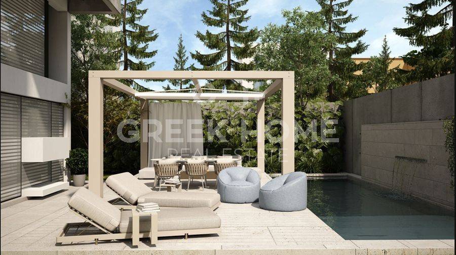 Marousi, Polydroso - Full floor Maisonette 180sqm electrical appliances furnished, bedrooms 4, levels 2, 4th - 5th, penthouse, under construction, year built 2026, energy class A++, living room, kitchen, 3 bathrooms, wc, heating type: autonomous (heat pump), air condition, parking covered,2, quiet, dual aspect apartment, luminous, corner, unobstructed view view, frontage, painted, drop ceiling, electric roller shutters, storage space, solar heater, external thermal insulation, fireplace, balconies, large balconies, elevator, garden, private terrace, thermal shut-off frames, double glazed windows, door screen, wood floors, handicap ramp, separate kitchen, three phase electricity, secure door, alarm, surveillance cameras, video doorbell, luxurious, under floor heating, internal staircase, jacuzzi, smart home, satellite, internet, pets allowed, north-western orientation, close to metro/train (up to 1000m).