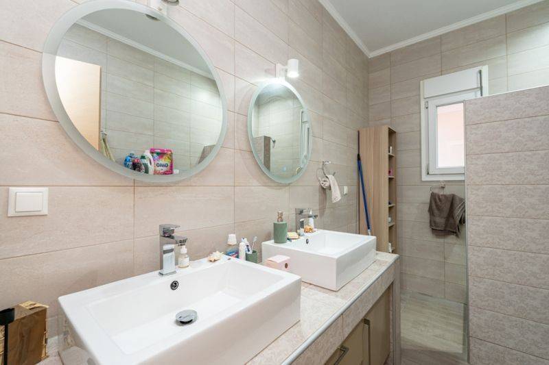For sale a 110 sq.m. first-floor apartment in Keramoti Nestos located in the southeastern part of the village. Built in 2018 and in very good condition. It is a front-facing, dual-aspect (through) and bright apartment. It consists of 2 bedrooms, 1 living room with kitchen and 1 bathroom. The floors are tiled, and the window frames are aluminum with double glazing and insect screens. Heating is provided by oil central heating and air conditioning, while there is also a boiler and a solar water heater. This is a modern residence suitable either for tourist exploitation (investment) or for owner-occupation. An additional advantage is its quiet neighborhood, as well as its close proximity to the sea (300 m), a supermarket (430 m), and the village center, where there is a pharmacy, cafés, taverns, and shops with high foot traffic, especially during the summer months.