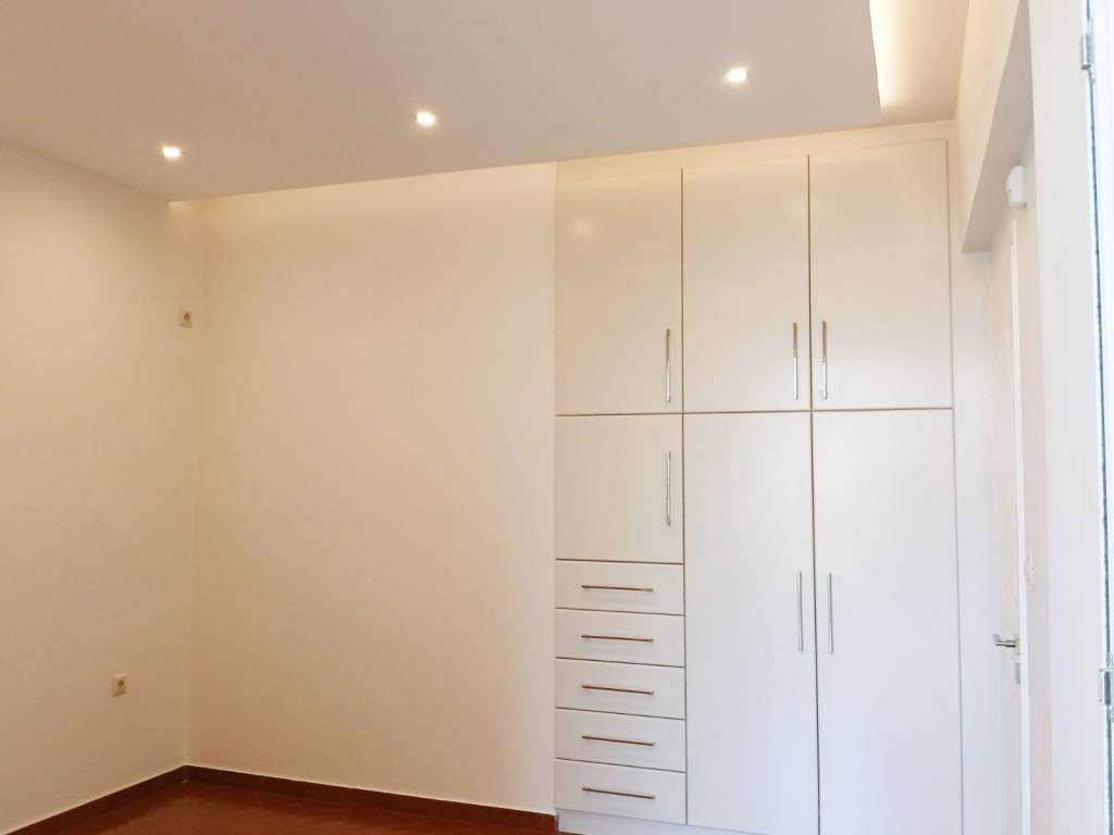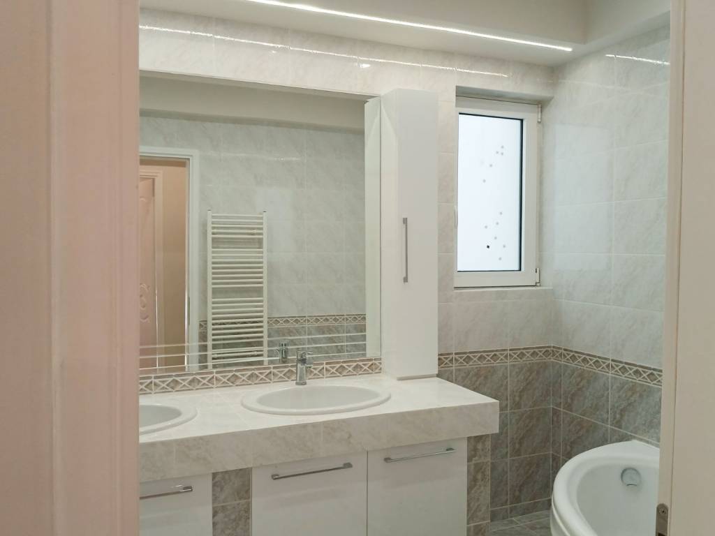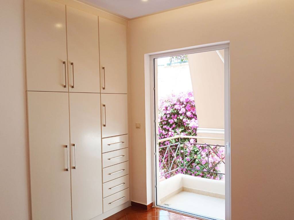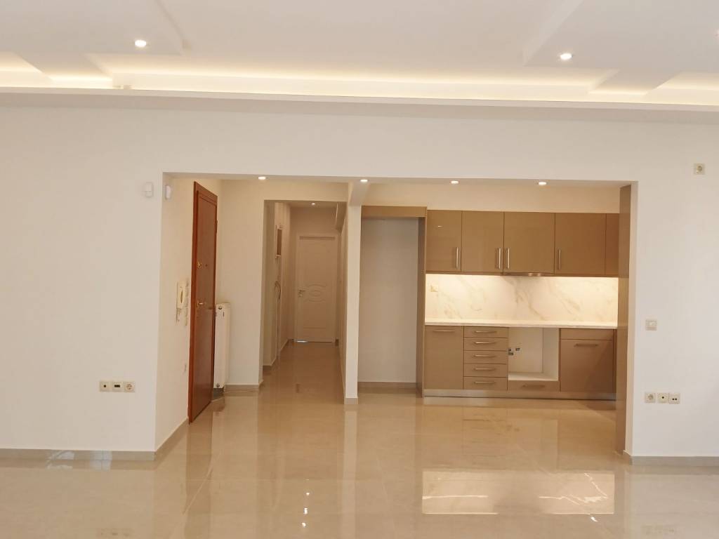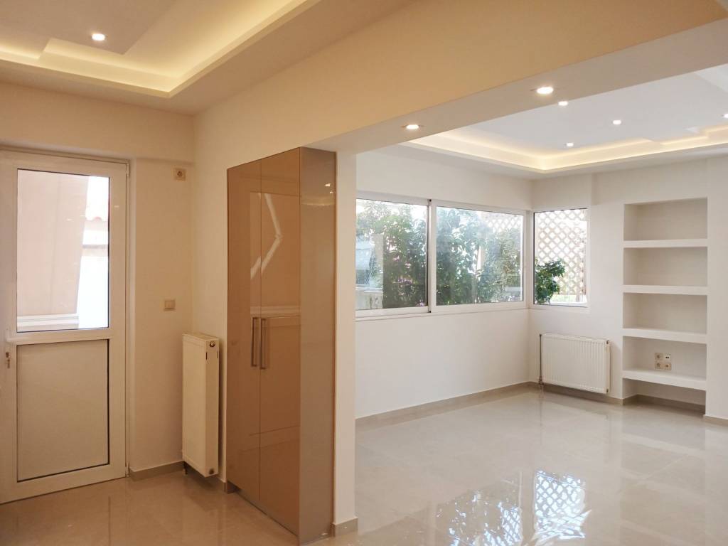 Glyfada (Pyrnari) Excellent 123 sq m 1st floor apartment, bright, frontage in a nice location, renovated in 2025, has 3 bedrooms, one master, 2 bathrooms, large living room with spacious dining room and fireplace, modern open plan kitchen, tiled floors, internet, large verandas, awnings, very bright, solar water heater, autonomous heating with heat pump, security door, alarm network, screens, high quality aluminum systems energy frames with thermal break and energy type glazing, basement storage room of 11 sq m and basement parking space, energy class B+