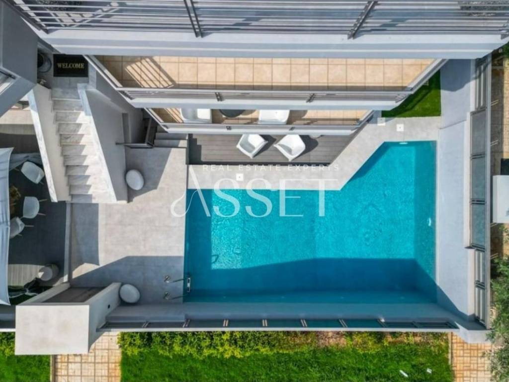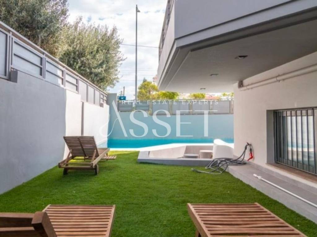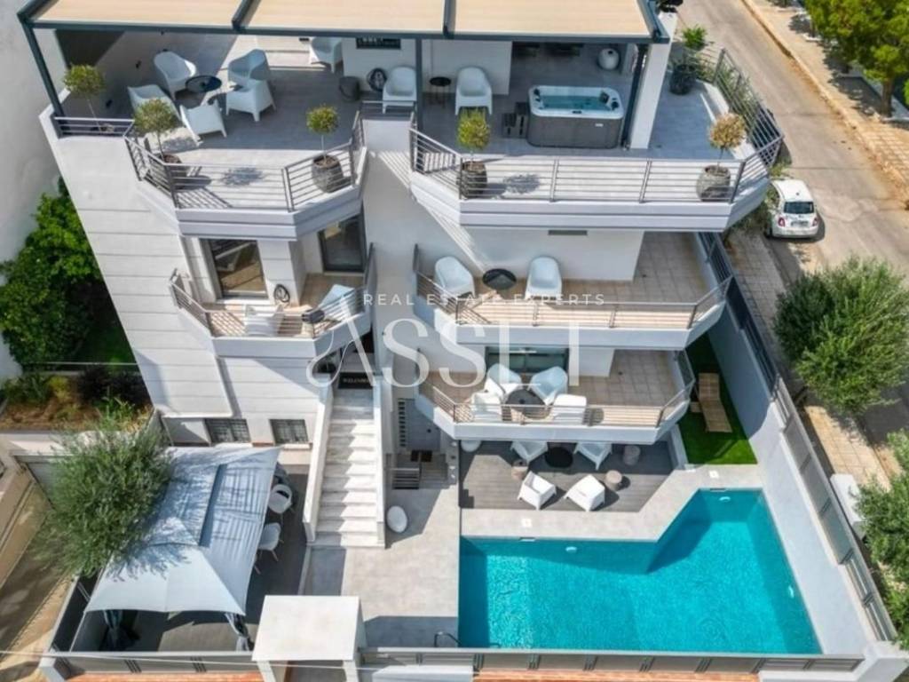 A 246 sq.m. maisonette located in Glyfada, Golf area, built in 2004, developed over three levels of 82 sq.m. each (basement, ground floor and first floor), with an additional roof garden. The property features four bedrooms, two bathrooms and two WC, bright and spacious living and dining areas, and a functional kitchen. The roof garden includes a private swimming pool and a relaxation area, ideal for private use and entertaining. It is situated in a quiet and green neighborhood with easy access to local amenities, schools and public transportation.
