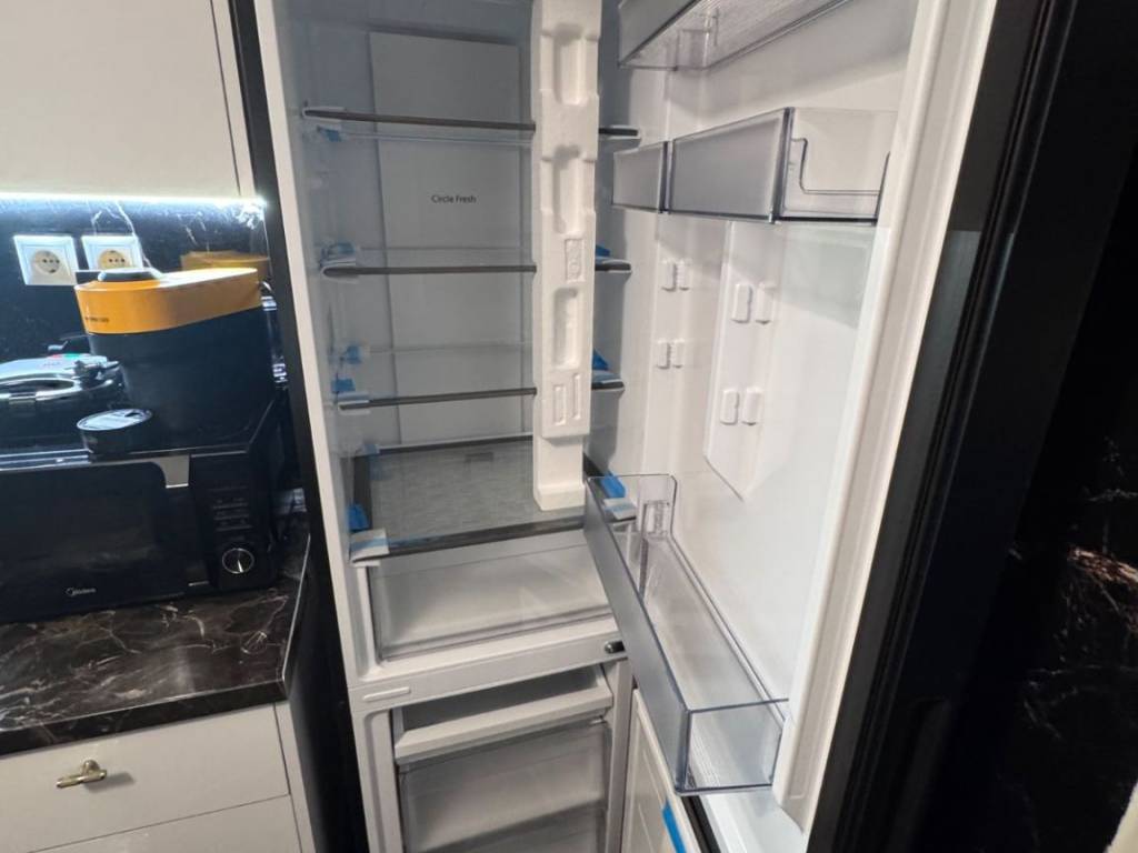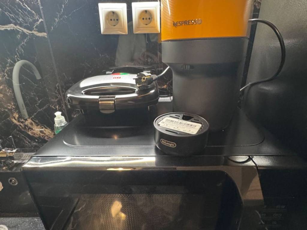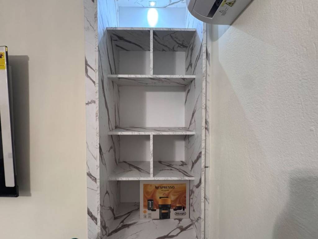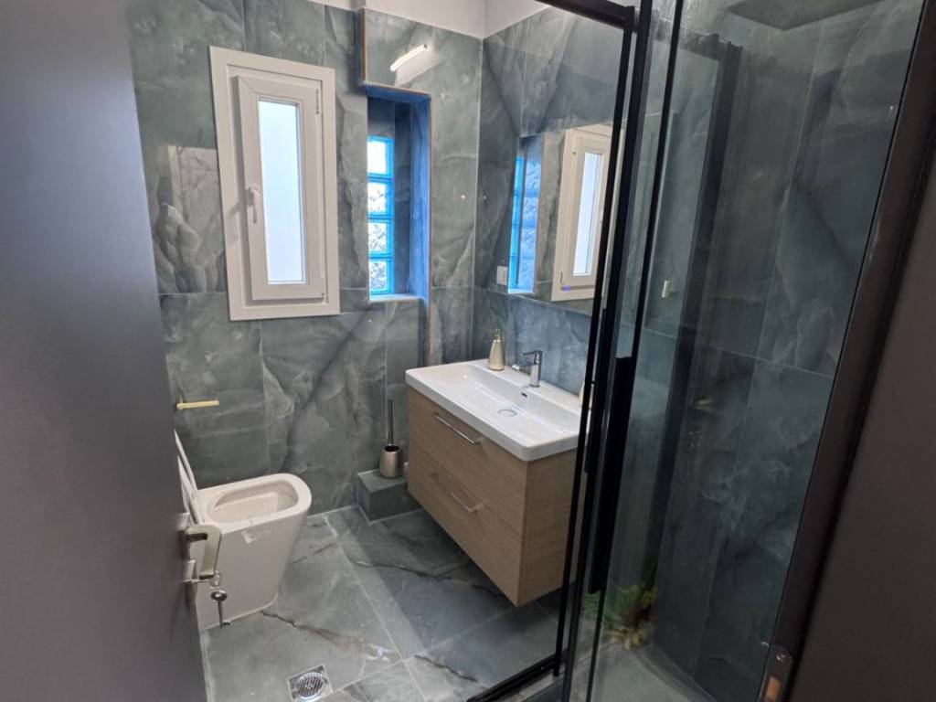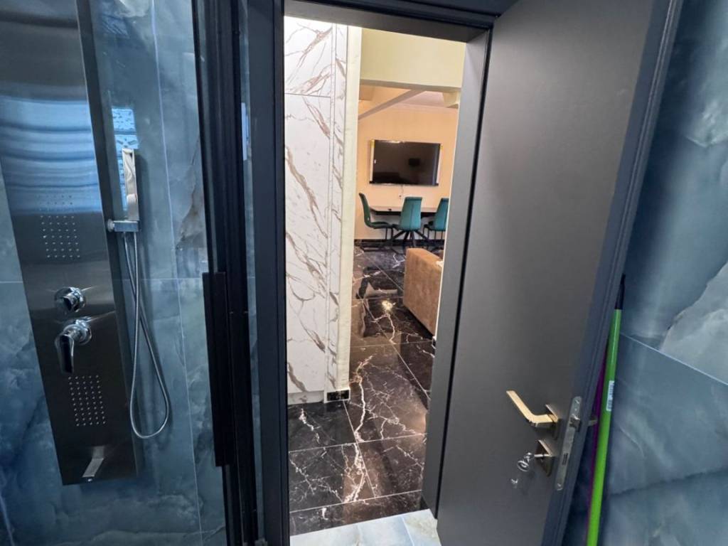 Two-room apartment for rent in the center of Larissa, Agios Konstantinos area, fully furnished, luxurious, fully renovated, with autonomous natural gas heating and 2 air conditioners, with King size luxury bed, armored, new frames, with smart wifi thermostat, three-seater sofa bed, 65 inch smart TV, new white super gloss kitchen, microwave, toaster, coffee maker, cutlery, dishes, glasses, black fridge-freezer, washing machine, Led mirror, shower with hydromassage, shower cabin, dining room with chairs, lighting, iron, black glossy luxury tiles throughout the apartment. parking available for an extra charge