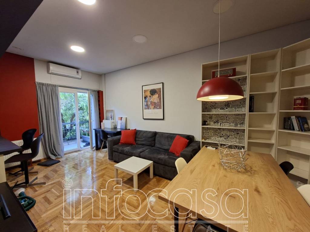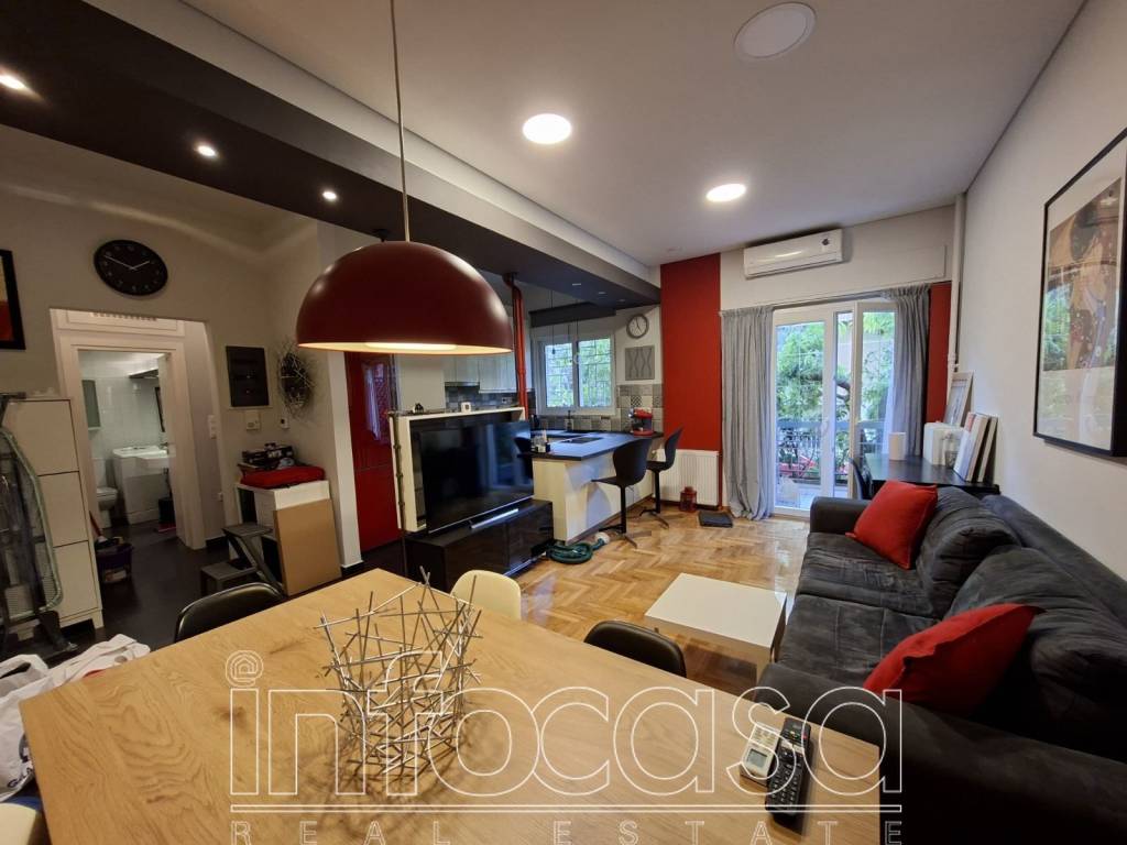 Ellinoroson: In a prime location near the metro station, fully renovated and furnished 53 sq.m. ground-floor apartment. It consists of a sunny living area, dining area, open-plan kitchen with built-in electrical appliances, 1 bedroom, and a beautiful bathroom. The apartment was fully renovated in 2019 and features autonomous natural gas heating, air conditioning, aluminum window frames with double glazing and insect screens, alarm system, security door, internal storage room, ample storage spaces, and a lovely balcony overlooking greenery. It is located in a quiet area that combines easy access to the local market and public transportation. Monthly rent: €750.. Infocasa, contact phone: +306974040009 - +302106233945, email: info@infocasa.gr
