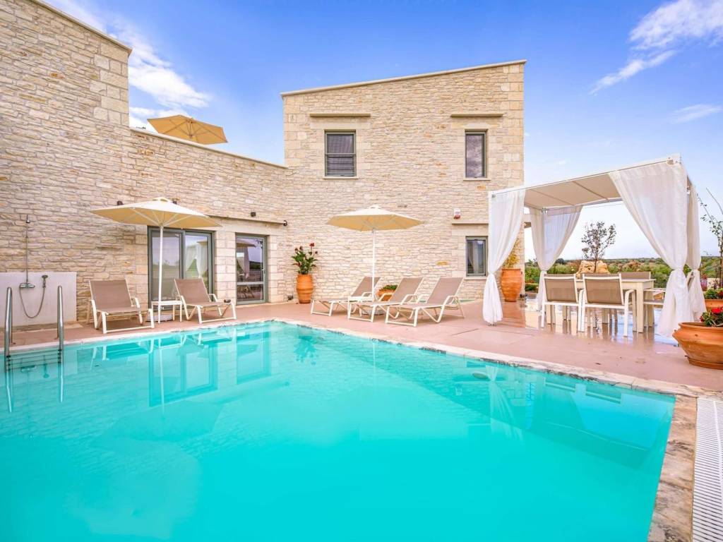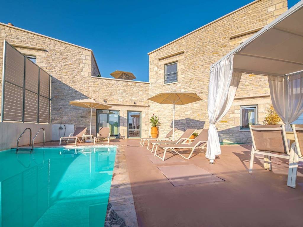 Villa of 116 sq.m. for long-term rental in the wider area of ​​Panormos. This is an independent property, in a complex of two villas, which extends over two floors (with the first being adapted for use by disabled people). The two villas have different orientations so as to offer privacy and independence. This particular villa has an exclusive outdoor area of ​​approximately 650 sq.m. enclosed with a stone wall and an electric garage door. The outdoor areas offer, at least, two parking spaces, ramps to the entrance of the house, trees and plants that blend harmoniously with the natural environment of the area as well as a dining area and barbecue. Of course, the show is stolen by the heated swimming pool (with jacuzzi) and the area around it that promises endless hours of relaxation both during the summer and winter months. The exterior of the building is entirely covered in stone and blends in with the natural landscape. Inside, what becomes immediately clear is the simple luxury that the villa exudes with the built-in sofas, the built-in kitchen cabinets and the pale colors. The fully equipped kitchen is integrated with the dining room and the living room. The space is bathed in natural light as it has large glass surfaces that offer direct access to the pool area. On the ground level there are large openings to allow wheelchair access while the bathroom is designed for use by disabled people. The ground floor offers also a large fully equipped bedroom. On the second level there is essentially the master bedroom which can also be used as an independent space. It has its own entrance, a huge terrace, a bathroom with shower and a separate cozy corner as a living room. Overall, this is a villa that can meet even the most demanding living needs. Another great advantage is the unformed basement of approximately 70 sq.m. which can be used either as storage space or as an office. It has both natural lighting and ventilation and there are no ‘suffocating’ conditions at all despite being underground. On a practical level, the villa has heat pumps for all uses. For heating water, for the heated pool but also for cooling and heating the property as a whole. The frames are aluminum with thermal breaks, there is an alarm while all appliances are functional and modern. The wider area is in the center of the island, which makes it easy to travel throughout Crete. Panormo is located between the cities of Heraklion and Rethymno, while the villa is just 1000 meters from Panormo beach. Five minutes from the property is Perama, one of the most developed settlements in the prefecture of Rethymno. There you can find everything. Supermarkets, banks, a medical center, schools and generally any kind of service that someone may need in their daily life. The city of Rethymno is 20 minutes from the property with access via the Northern Road Axis of Crete (VOAK) while the nearest airport is that of Heraklion which is about 45 minutes away. Responsible for the listing is Mr. Konstantinos Μoullos, licenced realtor with General Commercial Registry Number (GEMI) 3469607. Despite the fact that Aspis Real Estate Rethymno takes all precautionary measures to ensure that everything that is written in our classified ads is true, these are by statement of the sellers therefore we cannot accept any responsibility for the correctness of the information. In any case we offer a strong recommendation to check the information with certified professionals before any down-payment.