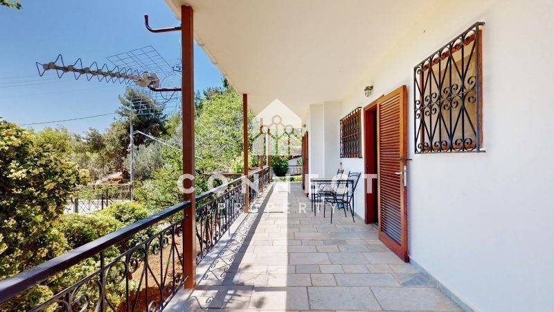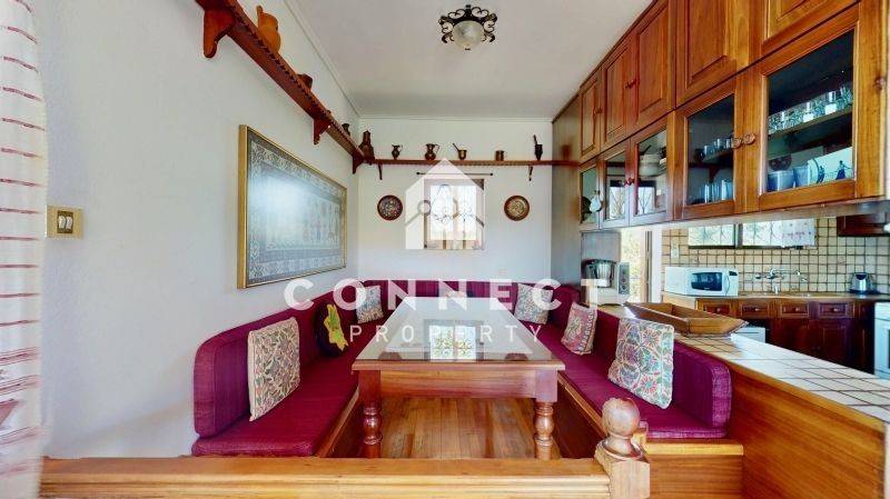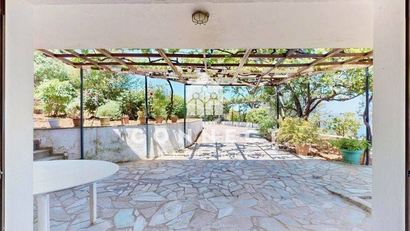 Detached house of 178 sq.m. on a 1700 sq.m. plot. The property consists of 2 independent levels, each with its own entrance and full autonomy: Upper level (82 sq.m.): open-plan living room with kitchen and dining area, two bedrooms, one bathroom, and one WC. Lower level (66 sq.m. of main living areas + 15 sq.m. auxiliary spaces): open-plan living room with dining area and a kitchen with breakfast bar, one bedroom, one bathroom, one WC, a pantry/food storage area, and 15 sq.m. of auxiliary space. Additionally, there is a separate autonomous storage room of 15 sq.m. within the plot. The first floor features large wraparound balconies with unobstructed views of both the sea and the mountains, while the ground floor also offers wraparound balconies overlooking the garden and the sea. The 1700 sq.m. plot includes fruit trees, the separate 14 sq.m. storage room, and well-maintained constructions such as a traditional fountain, a well, a barbecue area, two pergolas, an iron entrance gate, and even a stone-built dog house. The internal pathways are paved with high-quality stone. The property is in excellent condition, immediately habitable, and the built-in furniture shown in the photos is included in the price (movable items are excluded). It is legally and structurally checked, with an electronic building ID ready for immediate transfer