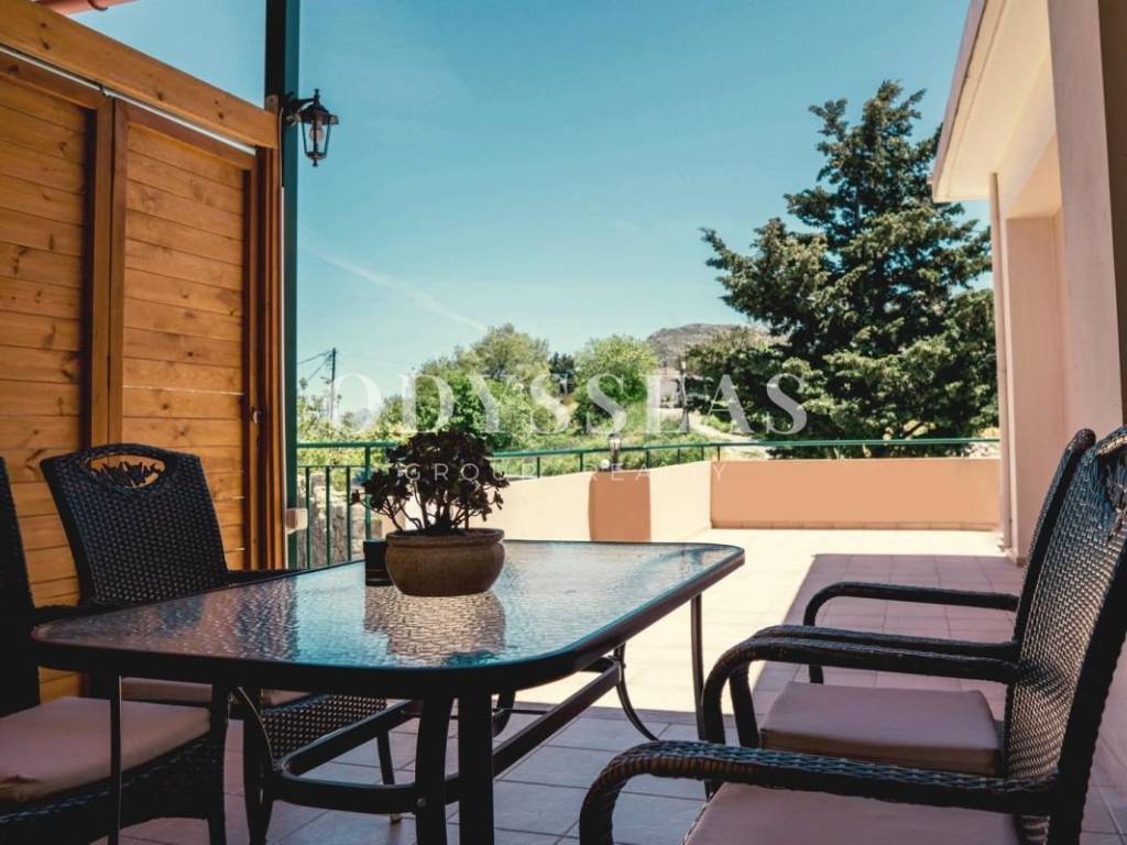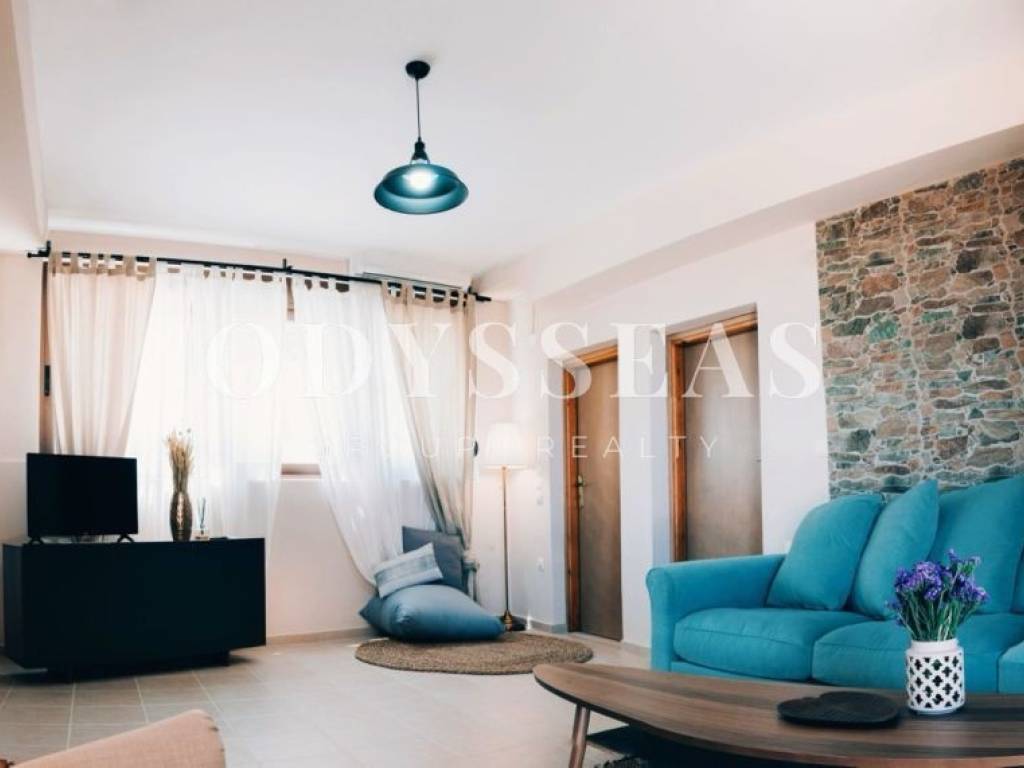 A luxurious apartment is available for rent in the village of Kanevos. Specifically, this is an impeccable 66 sq.m. apartment, fully furnished and equipped with electrical appliances, constructed with high-quality materials. It consists of a tastefully designed living room, a kitchen, one bedroom, and a bathroom. Additionally, it features a comfortable veranda with a large table, ideal for enjoying outdoor relaxation. This fully renovated residence is an excellent choice, offering numerous advantages, including its prime location just 7 km from Plakias and 25 km from the city of Rethymno. The property is also available for short- to mid-term rental (from 6 months and above), with the price adjusted depending on the rental period and included amenities.