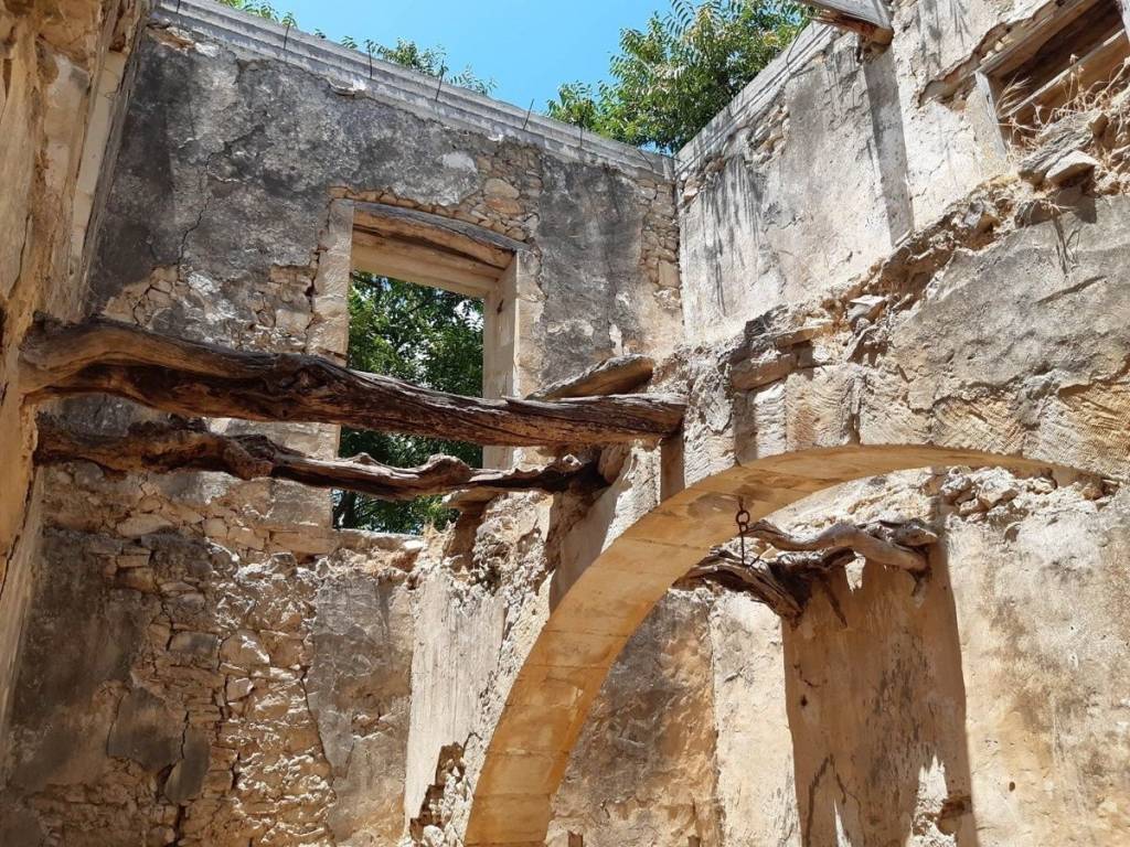 This beautiful stone ruin is located in the quiet and peaceful village of Aspro, only 5 minutes drive to the sandy beach of Almyrida. The property features traditional stone arches inside and arch windows and doors. There are some external stairs leading up to the second level. The property currently does not have a roof. However, the owner has done some repair work on the house and concrete reinforcement has already been put in, in preparation for a new roof. There is also a newly repaired driveway and entrance to the property to make access easier to continue the restoration. The current owner has had plans drawn up with a vision of making this into a 2 bedroom home, whilst keeping the traditional stone features and uniqueness of the property. The location is in the back streets of Aspro with a panoramic view of the White Mountains in front of you. From the roof, sea views out to Souda Bay can be seen. A roof terrace would be a fantastic idea to take full advantage of the views. The ruin is 68m² ground floor with 35m² 1st floor and 50² outdoor space. The property is being sold with the adjoining 69m² plot in front so there is space for your own courtyard. Viewings are must to really appreciate the beauty of this traditional Cretan ruin and the potential it has to turn it into an exceptional home.