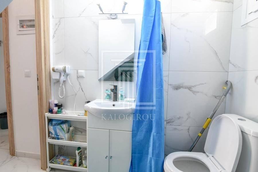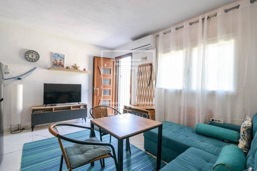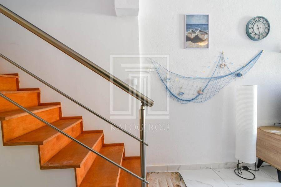 For sale furnished and equipped maisonette in Nea Kallikratia, Halkidiki. The property is arranged on two levels - ground floor and first floor. The ground floor has a living room with the kitchen, a bedroom, a WC and a terrace. There is an internal staircase leading to the 1st floor where there is a bedroom, a bathroom and a large comfortable balcony. The maisonette has an armored door, synthetic frames with double glazing, 2 air conditioners and a solar water heater. In front of the maisonette there is a garden and also an open parking space. It is located 200 meters from the sea and within walking distance from the center of Nea Kallikratia.
