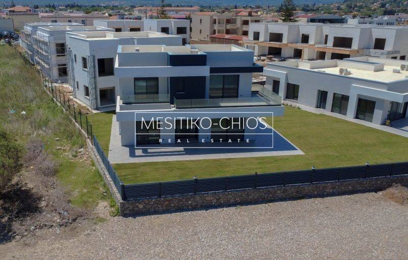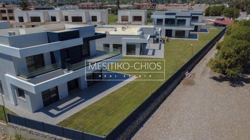 - Chios Chios Town Kontari FOR SALE newly built 2-level maisonette with a total area of 164.52 sq m. only 20 meters from the sea. It consists of 4 bedrooms, living room, kitchen, 3 bathrooms. It was built in 2025 with energy class A+ and has underfloor heating - heat pump, unlimited views, aluminum frames, granite floors, security door with trident, built-in wardrobes, disabled access, parking, storage room 15 sq m, garden, swimming pool, A/C, screens, triple glazing, solar water heater, boiler, photovoltaics, playroom, laundry room, cameras, video door entry, reception with doorman, opening, internal staircase, balconies 143 sq m. distance from city 2500 meters distance from airport 800 meters - Price: €1,235,000