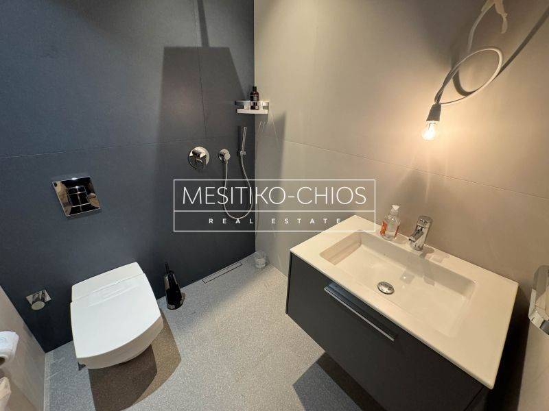 - Chios Chios Town Kontari FOR SALE newly built detached house ground floor with a total area of 90.80 sq m. only 20 meters from the sea. It consists of 2 bedrooms, living room, kitchen, 2 bathrooms. It was built in 2025 with energy class A+ and has underfloor heating - heat pump, unlimited views, aluminum frames, granite floors, security door with trident, built-in wardrobes, disabled access, parking, garden, swimming pool, A/C, screens, triple glazing, solar water heater, boiler, photovoltaics, cameras, video door entry, reception with concierge, opening distance from city 2500 meters distance from airport 800 meters - Price: €680,000