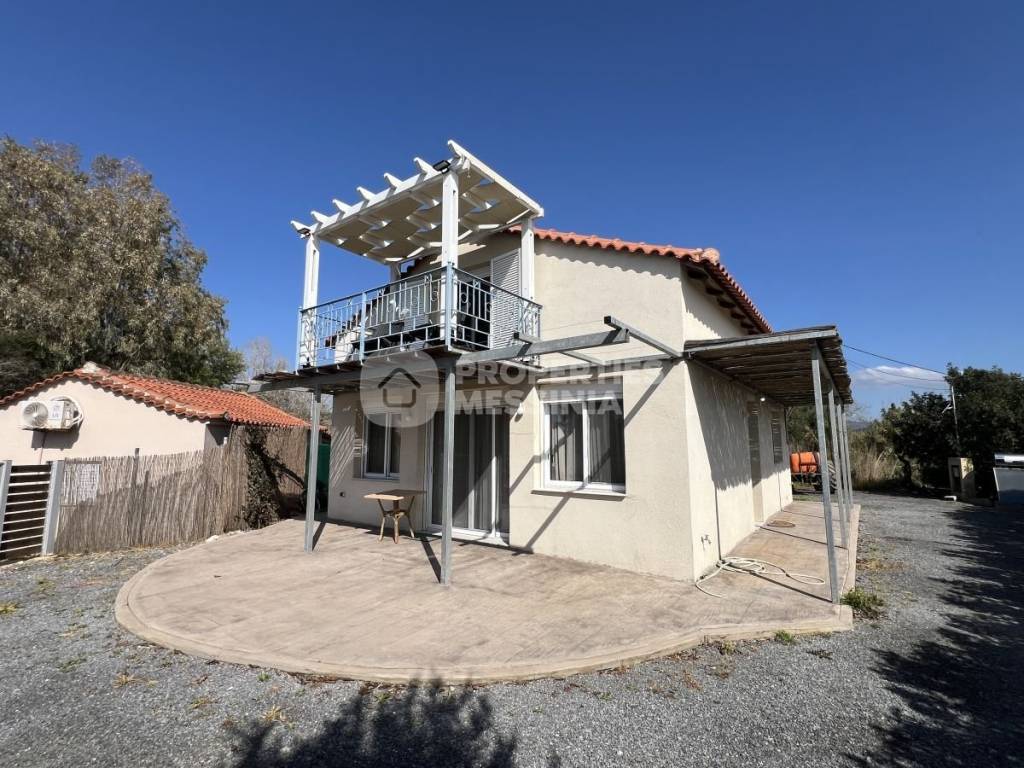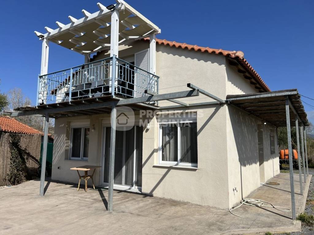 A partially furnished detached house of 60 sq.m. with a loft and unobstructed sea view is for sale. The property is situated on a plot of approximately 680 sq.m. and was built in 2022. It features aluminum window frames with double glazing, thermal insulation (facade insulation), tile and wooden flooring, air conditioning, a garden, and parking space. On the ground floor, there is a kitchen, living room, dining area, and a small storage room. The loft level includes two bedrooms, one of which has a balcony with unlimited sea views, as well as a small bathroom. The property is an ideal choice for a holiday home, as it is located in a quiet area outside the village, within very close proximity to the beach. Specifically, it is approximately 100 meters from the beach and about 1,200 meters from the village. Price: €350,000