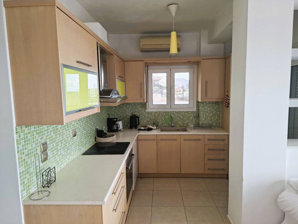 Available exclusively for long-term lease. Located in the picturesque coastal village of Makry Gialos, one of Southeast Crete’s most charming and authentic destinations, this independent 75sq.m. seafront residence with panoramic view offers an unparalleled living experience by the Libyan Sea. The Location: A Coastal Haven Makry Gialos is renowned for its crystal-clear, shallow Blue Flag beaches, its traditional harbor lined with seaside tavernas, and a high quality of life throughout the year. The property is situated within the village settlement, providing immediate walking access to supermarkets, pharmacies, and local cafes, while remaining a tranquil and private sanctuary. Key Features & Prime Living The property’s ultimate highlight is the expansive veranda—a private balcony offering unobstructed, panoramic sea views, perfect for relaxation or working with the blue horizon as your backdrop. • Views from Every Angle: The magic of the sea isn't just outside. Thanks to the thoughtful layout, the panoramic vista is visible directly from the living room and the kitchen, making every moment inside the house feel connected to the Mediterranean. • Ultimate Quiet & Privacy: This is a first-and-top-floor apartment with no residents on the ground floor. It essentially offers all the benefits of a detached villa, providing complete independence, zero noise from neighbors, and the feeling of a truly private sanctuary—perfect for focused work or peaceful living. • Perfect for Winter Stays too: The living area features a charming fireplace, making it an ideal choice for year-round living. There is no better experience than relaxing by the fire during the winter months while gazing at the mesmerizing sea view—a unique blend of coziness and Mediterranean beauty. • Layout: A bright open-plan living and kitchen area, two (2) comfortable bedrooms, and one spacious bathroom. • Fully Equipped: The residence is offered fully furnished and equipped with all necessary electrical appliances Ideal For This property is a perfect match for: 1. Digital Nomads: For those seeking a "home office" with one of the best views in the world, in an inspiring environment with all modern amenities at your doorstep. 2. Retirees: For those looking to enjoy the serene lifestyle and the mild, sunny climate of Southern Crete, with the convenience of having everything within walking distance. Monthly rent: 850 euro/monthly