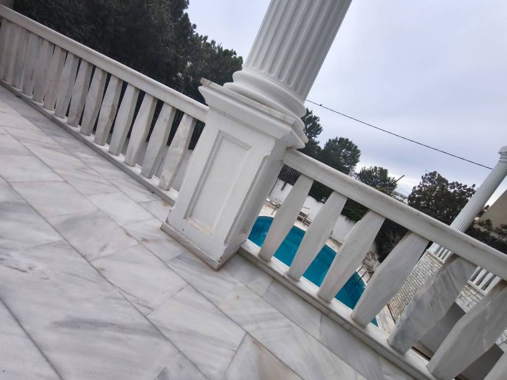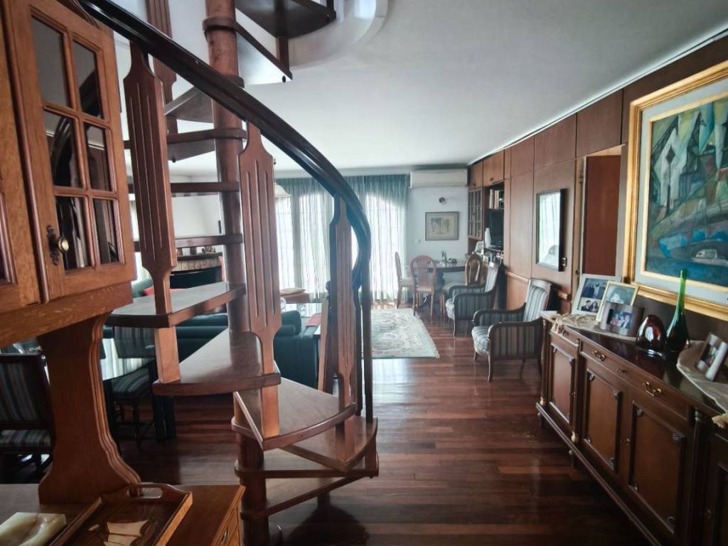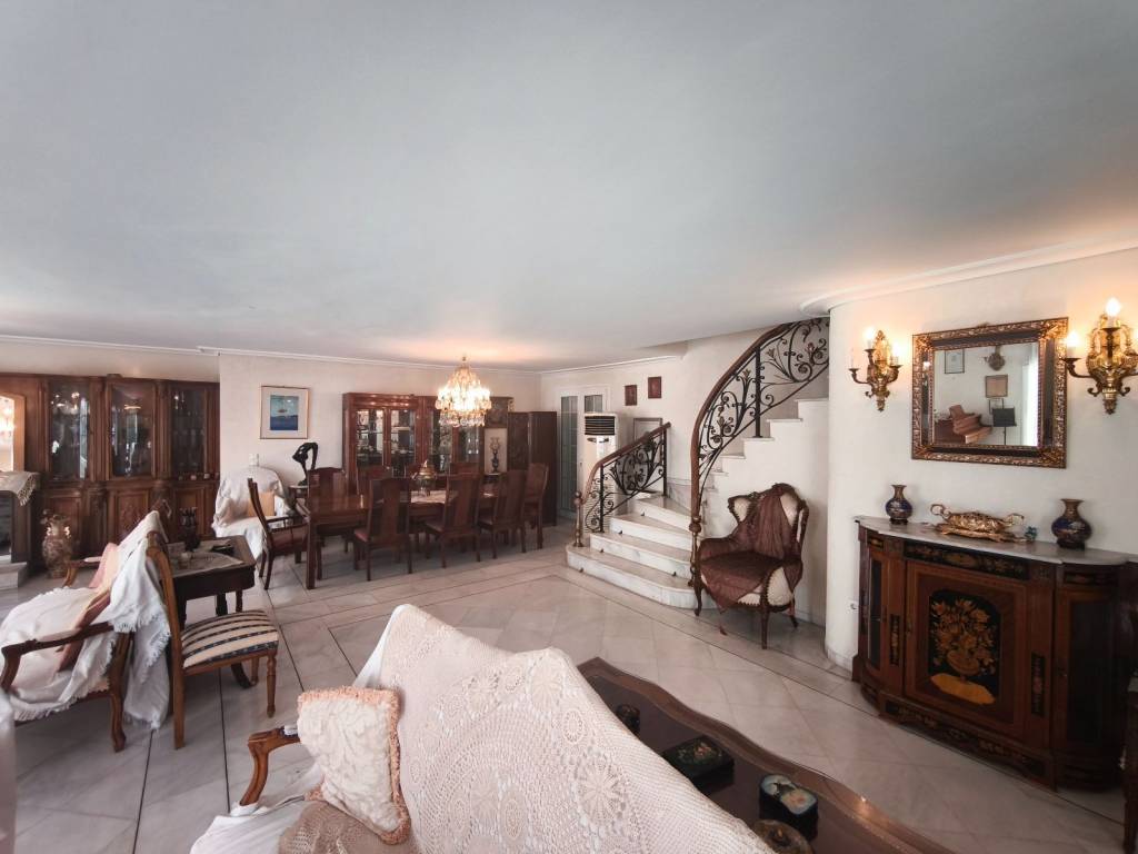 Εξαιρετικής και πολυτελους κατασκευης γωνιακή μεζονέτα, σε τρία επίπεδα ,με τζάκι σε κάθε επίπεδο ,συνολικού εμβαδού 287 τ.μ.σε συγκροτημα υψηλών προδιαγραφών κατασκευασμενο από εφοπλιστη για οικογενειακή χρήση.Σε μεγάλο οικόπεδο 800 τ.μ διαθέτει κήπο με πισίνα ,parking και ασανσέρ από την πίσω πλευρά του κτιρίου.Μαρμαρα Πεντέλης ,δρύινα πατώματα ,ξύλο κατασκευές Βαραγκης και ωραιο προσανατολισμό με ανοιχτό ορίζοντα ,σε ένα από τα καλύτερα σημεία της Άνω Γλυφάδας και μόλις δύο στενά από την Λεωφόρο Βουλιαγμένης.Στα συμβόλαια είναι δυο οριζόντιες ιδιοκτησίες και μπορεί να χωριστεί σε δύο ανεξάρτητα διαμερίσματα..Τεράστιες βεράντες.
