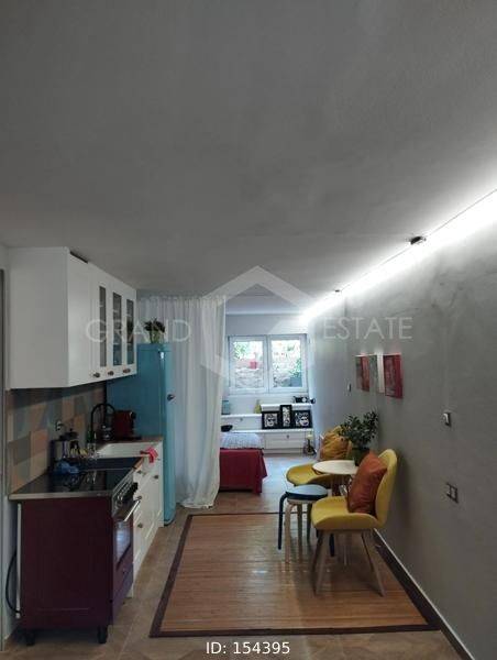 Glyfada, Gkolf - Studio 43sqm fully furnished, bedroom, semi-basement, fully renovated, year built 1970, renovation year 2024, energy class B+, living room, kitchen, bathroom, quiet, painted, garden, aluminum frames, double glazed windows, door screen, ceramic tiles floors, pets allowed, within city plan, residential zone, access from asphalt, short term lease, close to entertainment (up to 500m), close to park (up to 500m), close to sea (up to 1000m).