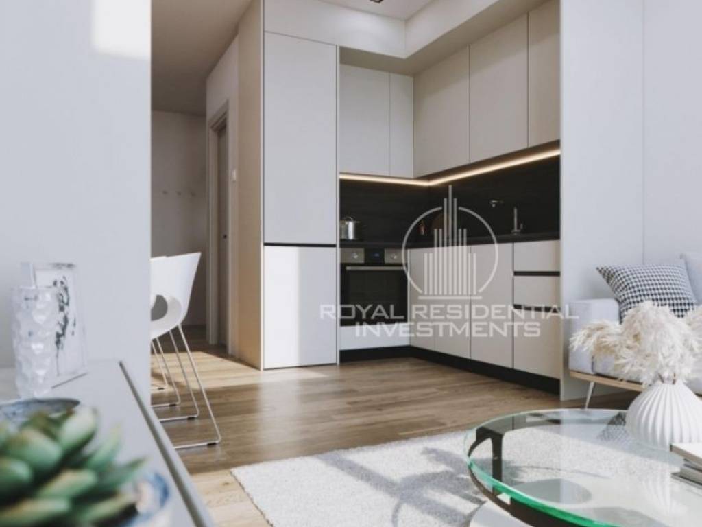 Property Code: 1-16493 - For sale - Under construction, furnished apartment   with a total area of 40 sq. m. on the  4 floor, in a luxurious residential complex. It consists of 1 bedroom, open plan living room and kitchen, 1 bathroom. The Complex is offering  common swimming pool, reception with sitting tv area, 24 /7 security, restaurant and gym area offering a high quality of living. Other extras of the property are: spacious balconies with sea view, parking space, storage room, aluminum frames, double glazing, security door, elevator. It is located in an excellent location, only 400 meters from the metro station and other public transport, 1 km from the port and is next to the beautiful market of Piraeus and the sea.