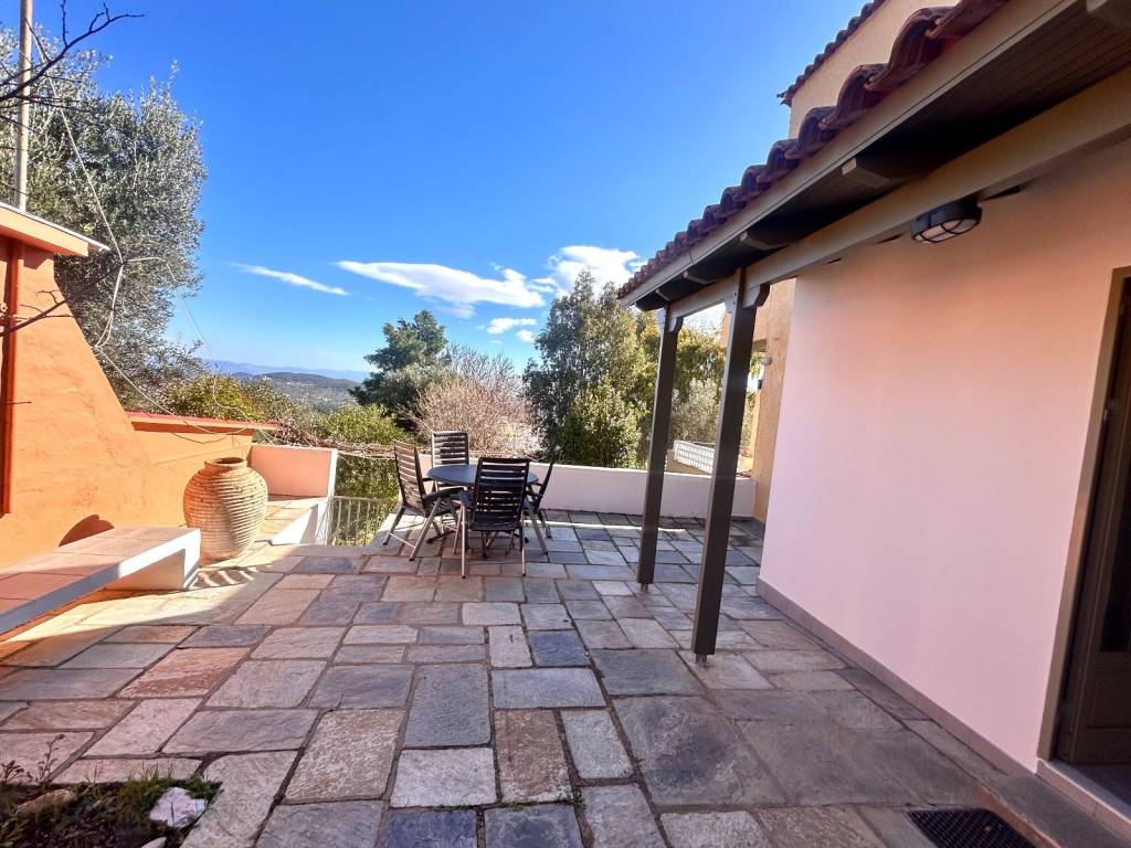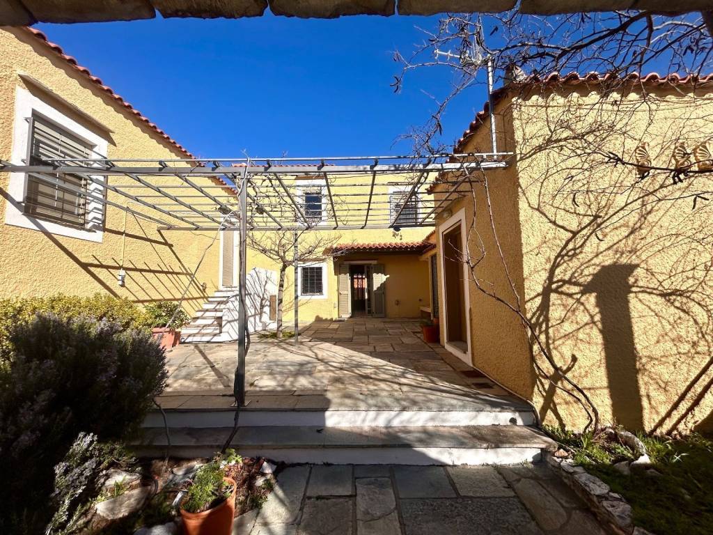 Παιανια Αγία Τριάδα διατίθεται εξαιρετική μονοκατοικία σε 2 στρέμματα οικόπεδο και πανοραμική θέα. Σε πολύ ήσυχο σημείο στους πρόποδες του Υμηττου με πολύ ωραίο περιβάλλον χώρο μέσα στο πράσινο. Αποτελείται από Ισόγειο χώρο όπου βρίσκεται ο χώρος υποδοχής με έξτρα χώρο (patio) και πρόσβαση σε μια πολύ μεγάλη βεράντα, κουζίνα εξοπλισμένη με κουζίνα γκαζιού και πλυντήριο πιάτων, μεγάλο χώρο για δύο τραπεζαρίες και wc . Στο 1ο επίπεδο έχουμε τα 2 υπνοδωμάτια με ένα μπάνιο και στο 2ο επίπεδο έχουμε το master bedroom με το μπάνιο του και ένα χώρο γραφείου. Το ακίνητο διαθέτει αποθηκευτικό μεγάλο χώρο και μέσα στο σπίτι και ανεξάρτητη αποθήκη στον κήπο. Έχει ενδοδαπεδια αυτονομία θέρμανσης με πετρέλαιο ανά όροφο. Έχει δίπλα τζάμια με σίτες και έξτρα κάγκελα προστασίας, τζάκι, μπόιλερ, και τζάκι. Διαθέτει 2 θέσεις στάθμευσης με σκέπαστρο και 2 ελεύθερες μέσα στο οικόπεδο. Έχει γκαραζοπορτα με τηλεχειριστήριο. Έχει εξαιρετική θέα και επιτρέπονται τα κατοικίδια.