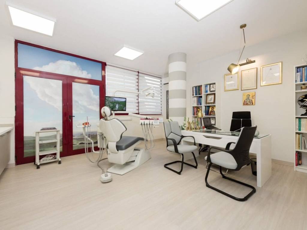 Το γραφείο είναι 92 m^2 είναι στο 2ο οροφο άνωθεν καφετεριων έχει πρόσοψη και βεράντα που βλέπει στην πλατεία Καραπανεικα και στο δρόμο Σάντα και Γλεζου .Λειτουργεί τώρα ως οδοντιατρειο. Θα είναι διαθέσιμο τέλος Μαιου κατόπιν συνεννόησης με τούς ενοικιαστές πού είναι τώρα μέσα .Διαθέτει μπάνιο και κουζινακι.
