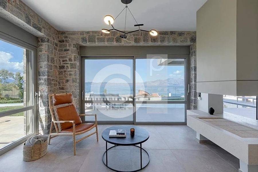 Malesina, Osmaes - Villa 250sqm plot 1550sqm, bedrooms 3, master bedrooms 3, levels 3, basement - ground floor - 1st, excellent condition, year built 2021, energy class B+, living room, kitchen, 3 bathrooms, heating type: autonomous (heat pump), air condition, parking, quiet, dual aspect apartment, luminous, sea view, frontage, painted, storage space 39sqm, fireplace, balconies, large balconies, garden, garden 1300sqm, built in appliances, aluminum frames, double glazed windows, door screen, wood & tile floors, three phase electricity, night electricity discount rate, secure door, alarm, luxurious, swimming pool, private pool, internal staircase, satellite, pets allowed, within city plan, residential zone, north-eastern orientation, access from asphalt, investment property.