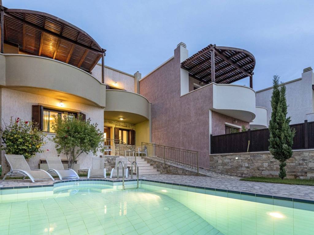 Just meters from the beach, the Makrigialos Holiday Homes in southeastern Crete offer rare quality and value, following all the principles of sustainable development. It is a 30-minute drive east of Ierapetra, a port city of some 15,000 people, that is an economic and cultural center for the region, with its own hospital. Ready for immediate use, the 4-bedroom homes provide everything needed in a village that combines amazing coastlines with an authentic Cretan lifestyle. There are four villas available, each with a royal living space between 253 and 268 sqm including the basement, and with 4 bedrooms. Each villa is built on a plot of approx. 300 sqm and has its own private pool. Prices start at ⬠480,000 up to ⬠500,000.Outdoor AreasA welcoming heated pool is located in the front natural-stone paved yard, equipped with its own jacuzzi. It is ideally situated next to a pergola-shaded, BBQ area with an oven and grill. The surrounding space of each house spares pedestrian precincts, parks, and a private parking area with an automatic garage door.General Layout The villas have been built with top-quality construction materials (natural stone, wood, marbles, ceramic tiles, etc.). They are located 100 meters from an impressive swimming beach with an array of flexible features that show attention to detail. On the ground floor, there is a comfortable open plan kitchen, dining, and sitting area that opens up to a covered porch perfect for outdoor summer dinners. There is also spare room provided for here that can be cleverly turned into an office or extra bedroom, next to a bathroom and WC. On the first floor, there are three bedrooms, each with its own covered balcony providing impressive sea and mountain views. A second bathroom and WC has also been provided for on the first level. The use of space in the homes has been well thought out, providing a variety of options. In the basement, there is a useful storage area, along with an additional recreational room.  Comfort is key. The homes are heat insulated and soundproofed providing energy efficiency and greener living in a quieter, peaceful environment. Floor heating systems and inverter air conditioners have also been installed, giving you more control over room temperature. The house also provides for hassle-free living. Electric appliances have been included, such as a fridge, cooker, dishwasher, and stylish light fittings.  RentalThe area though is more than a summer destination. Residents live here all year round, offering owners the ability to not only take advantage of the ideal climate conditions themselves but also make use of the property as a rental investment.The property can be managed by a local management company that will be responsible for the maintenance and management of the common areas. The managing company will provide home management and rental services (as an option for the buyer).LocationÂ