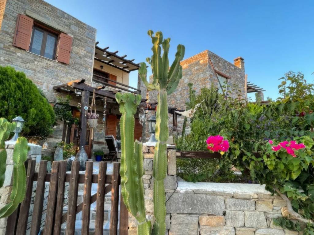 The interiors are move-in ready, with both bathrooms and the kitchen fully furnished and equipped. Double-glazed windows with fly nets, central heating (powered by diesel), and air-conditioning units ensure comfort throughout the year. The plot is fenced, offering privacy and security, while the property enjoys beautiful views of both the sea and the surrounding countryside.